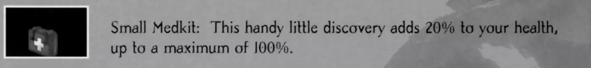 小医疗包:这个小道具能为你恢复20%的生命值(最高恢复至100%)。