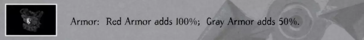 护甲:红色护甲增加100%;灰色护甲增加50%。