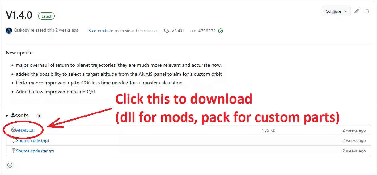 热门模组列表 本节旨在让新手快速了解《航天模拟器》中最有价值的模组。 大多数模组本身都很有价值。不过,您的选择在很大程度上取决于您在《航天模拟器》中喜欢做什么。我们按类别列出了我们认为最值得考虑的模组和部件包。 请注意,并非所有模组或自定义部件包都在列表中。我们的目的是列出最有价值的模组,但其他模组也可能值得考虑。模组制作是一项艰巨的工作,所有模组制作者的劳动都值得尊重,但我们优先推荐构思最完善、投入精力最多的模组也是合乎逻辑的。要么是下载链接(点击即可下载模组),要么是GitHub仓库链接。如果你不知道如何浏览仓库,可以按以下步骤操作: - 在右侧找到发布内容,然后点击最新的那个。