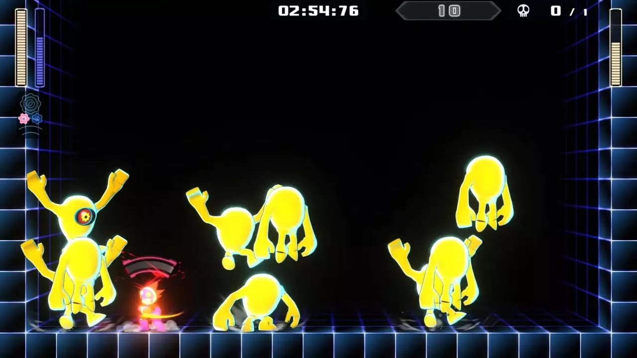 第五房间 目标:消灭10个旋转C 策略:前往传送带左侧,装备【混乱雷霆】。当旋转C从上方平台落到小平台时,向上发射【混乱雷霆】,这样应该能一次性消灭2个旋转C。重复5次即可开启传送门。
