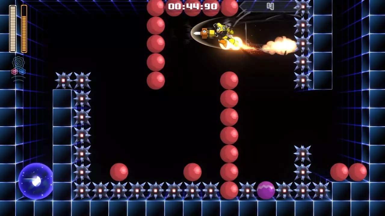 房间4 目标:抵达传送门 策略:这是整个流程中最难的房间之一,初次尝试很可能导致流程失败。使用蓄力射击击败兔子气球,然后使用堆土机冲刺到右侧并下落。第二部分更具挑战性,先跳向紫色弹跳球,接着按住跳跃键进行高跳。开启速度齿轮,在下落过程中再次使用堆土机冲刺到弹跳球墙壁并下落。小跳(只需按住右键)到下一个弹跳球,然后按住跳跃键并借助墙壁反弹(按住右键撞向墙壁后再按住左键),以着陆在传送门上。不要使用堆土机进行此跳跃,否则会死亡。