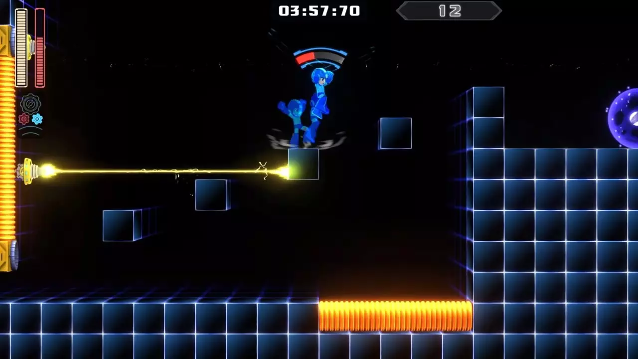 12号房间 目标:抵达传送器 策略:频繁使用速度齿轮并躲避电力发射器。务必经常滑行以躲避电流,直至跳至传送门处。