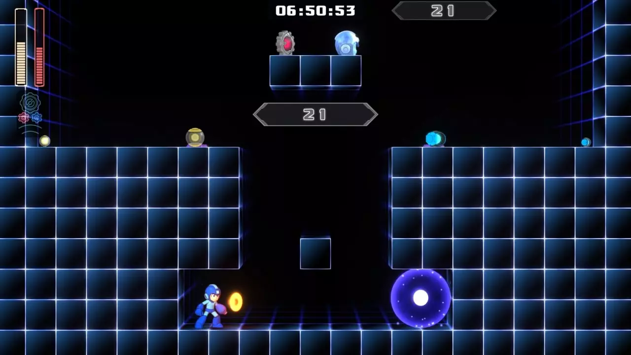 房间20 目标:击败莫弗恩 策略:在挑战莱特博士的试炼前,务必先练习对抗莫弗恩。它的弱点是弹跳球,所以只需持续使用弹跳球来击破电气屏障并破坏其核心。留意它的攻击,随时准备使用速度齿轮,因为一旦被击中会受到大量伤害,所以要不惜一切代价躲避。当莫弗恩生命值低于一半时,它会使用力量齿轮并开始发射威力极强的激光。使用速度齿轮躲避激光,并继续使用弹跳球来结束战斗。确保为下一个房间保留至少一发弹跳球的弹药。击败莫弗恩后会生成传送门。