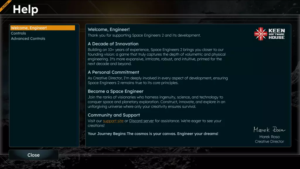 我们对《太空工程师2》的愿景 《太空工程师2》不仅仅是续作,更是对太空工程体验的重新诠释。它保留了《太空工程师》中所有你喜爱的元素,并将其提升到了10倍的水准。基于我们在原版《太空工程师》超过10年的开发经验——该游戏在PC、Xbox和PlayStation平台的销量已超过500万份——我们将向你阐述我们的理念。想象一下,你进入了一个宇宙,在这里你富有创造力的工程抱负终于以前所未有的力量、深度和可能性得以展现。凭借直观易懂的工具——它们就像纸上的草图,却又强大到足以支持最宏大的项目——《太空工程师2》借助新一代VRAGE3引擎,彻底改变了创造体验。首次探索拥有丰富剧情和背景故事的宇宙,与充满生机的世界中的NPC互动,并利用体积水等全新功能。无论你是经验丰富的工程师还是初入太空的新手,都能在这个因你的创造而真正焕发生机的宇宙中留下自己的传奇。我可以肯定地说,《太空工程师2》是我们所学一切的集大成之作。它提供了更广阔、更复杂、更可靠且直观的体验,为下一个十年及以后做好了准备。我们在打造太空工程师最佳沙盒的追求中绝不妥协。