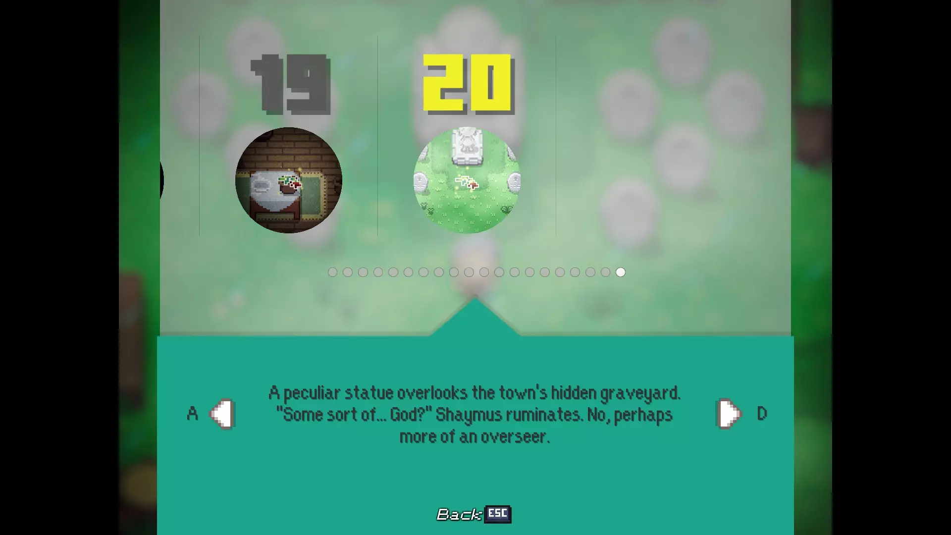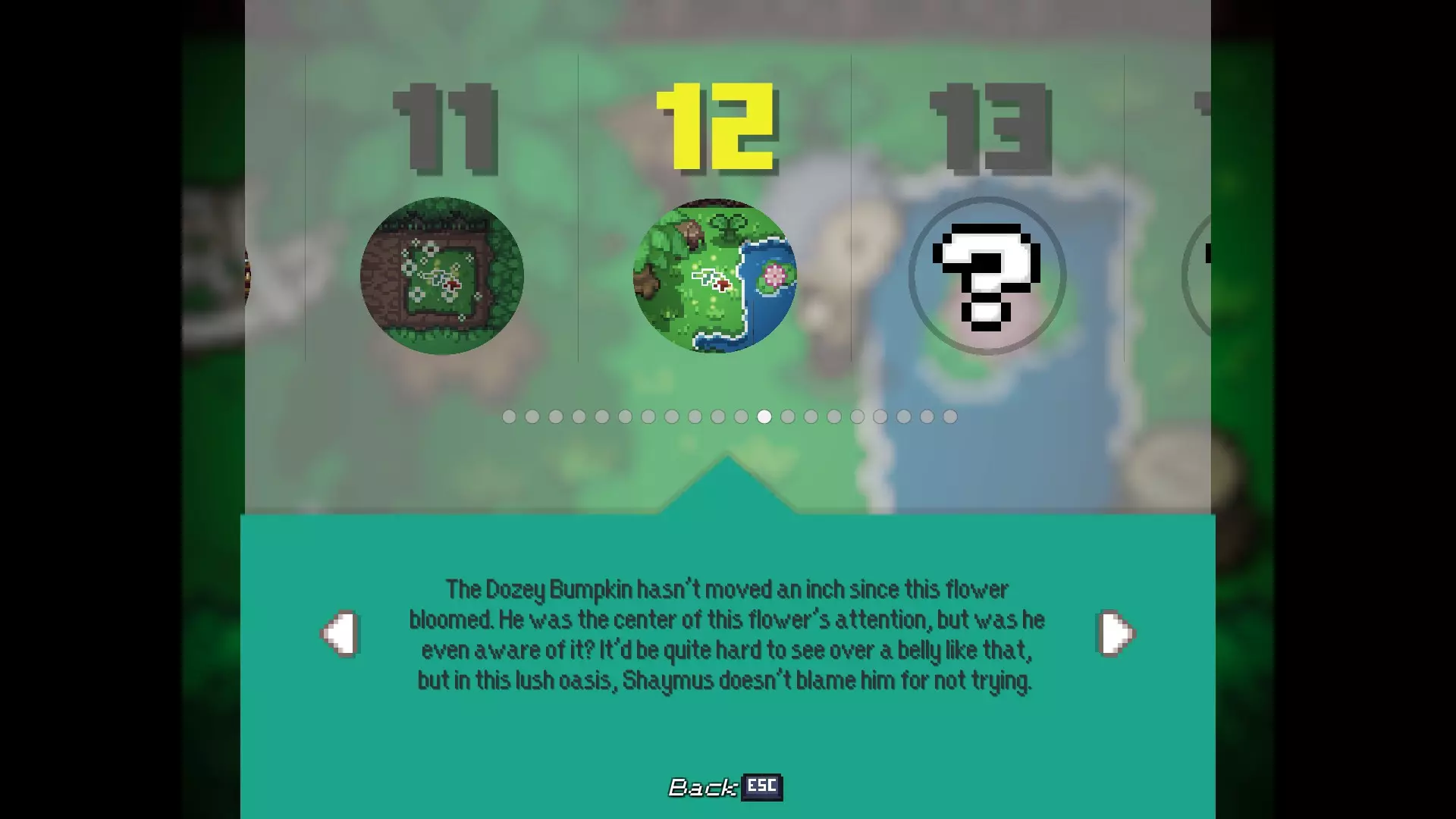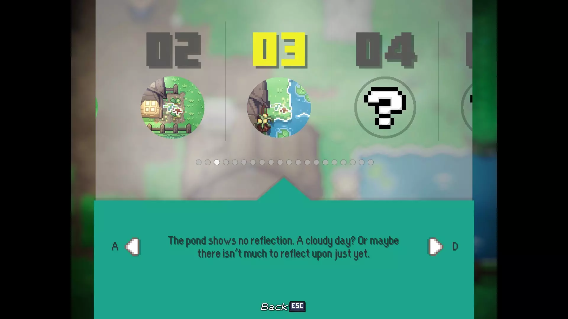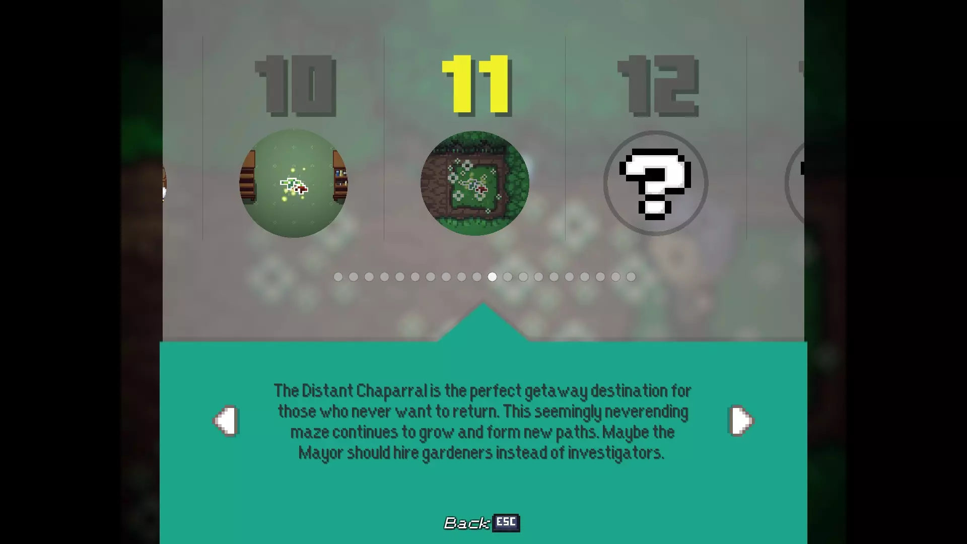 多嘴多舌 与卡里斯维尔的每位居民对话。 - 老流浪者:卡里斯维尔中心的男子 - 柴犬艾柯:卡里斯维尔中心的狗 - 伊茜-贝茜:卡里斯维尔中心北出口的女子(进入镇长宅邸前) - 密涅瓦女士:镇长宅邸向北一个屏幕处的女子 - 瓦伦丁镇长:镇长宅邸内,密涅瓦女士位置向西一个屏幕处 - 瞌睡乡巴佬:遥远的灌木丛,从11/20的枯萎花朵处向北走 - 老熊:衰老山脊的房屋内,下楼与熊对话 - 卡拉女士:衰老山脊的房屋内,上楼与女子对话 - 迷路男子:衰老山脊的房屋内,下楼后坠入洞穴,前往北出口并穿过钢门