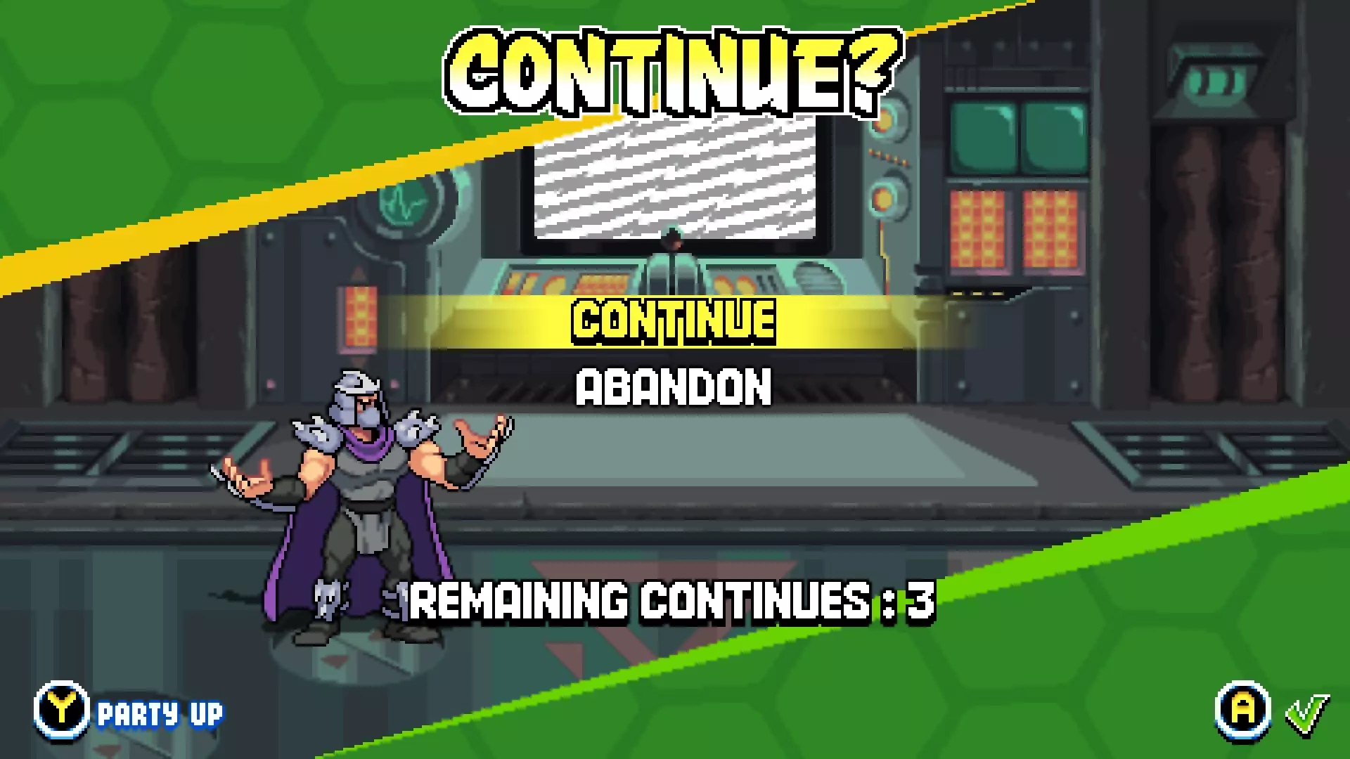 Master of One Quarter:不使用续关通过街机模式。 如果在多人模式下选择简单或中等难度,这是一个很容易达成的成就,应该对所有人来说都没什么问题。但如果有人不明白是什么意思的话——当生命值耗尽(初始有3条命)后,会被弹到选择【继续】或【放弃】的界面。你可以通过点击【继续】从失败的关卡重新开始游戏,也可以选择【放弃】。根据成就要求,你不能失去所有生命,也不能看到这个屏幕。