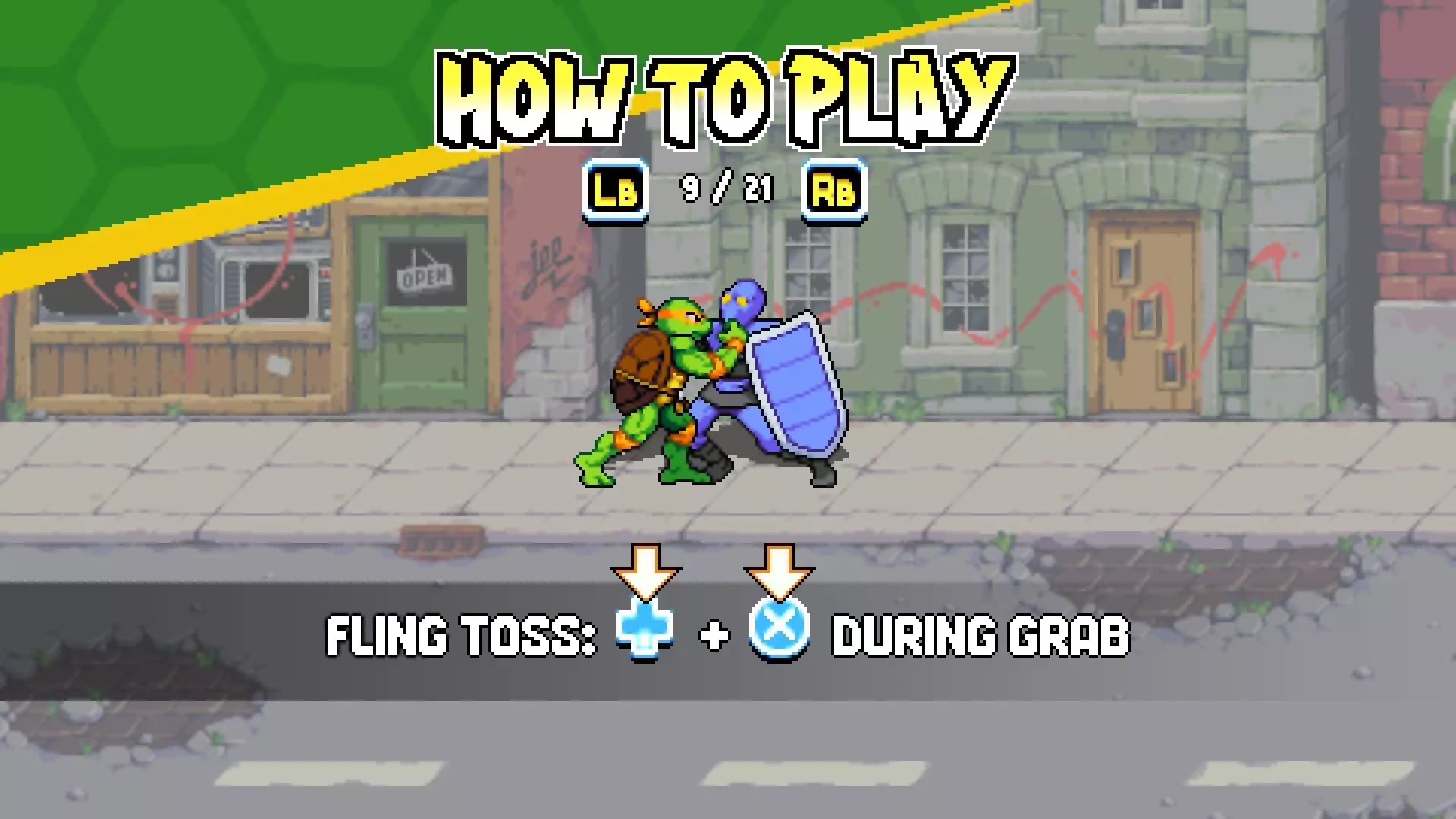 靠近敌人,最好是靠近被击晕的敌人,这样更容易抓住他们,然后同时按下↓ + X键,敌人就会像经典游戏《忍者神龟4:时空武士》里那样被打飞出去。