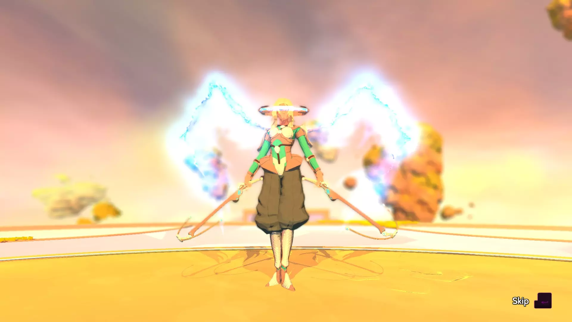 还算简单,除非你不擅长平台跳跃。不过被击中或从平台上掉下去的感觉很糟糕,所以如果你想获得她的S评价,值得好好练习。 第一阶段: 保持移动并以Z字形向前闪避,这样你甚至不用躲避橙色球体。别费心去格挡它们,炮塔额外发射的那组球体意味着你肯定会被击中。 接下来的部分和《Furi》中的一样,只是她现在会生成无法穿透射击的白色球体。考虑到能见度不佳,再加上其他攻击,这可能会非常烦人。 第二阶段: 慢慢来,在平台上追击她。尽量远离边缘,没有什么比被流弹击中击落并损失3格生命值更让人沮丧的了。 接下来的阶段变化与前一阶段类似,需要躲避额外一波攻击,同时还要避开那些白色球体才能攻击到她。 第三阶段: 与《Furi》中的机制相同,只是炮塔现在除了光束攻击外还会发射范围攻击波。应对这个阶段的一个技巧是像平常一样快速穿过光束,如果你保持领先,范围攻击波就会完全消失。但要注意,掉落或被击中意味着你将不得不再次面对它们。更糟糕的是被击中并击落平台,这会造成高达4格生命值的伤害,超过你总生命值的三分之一。 【星星】