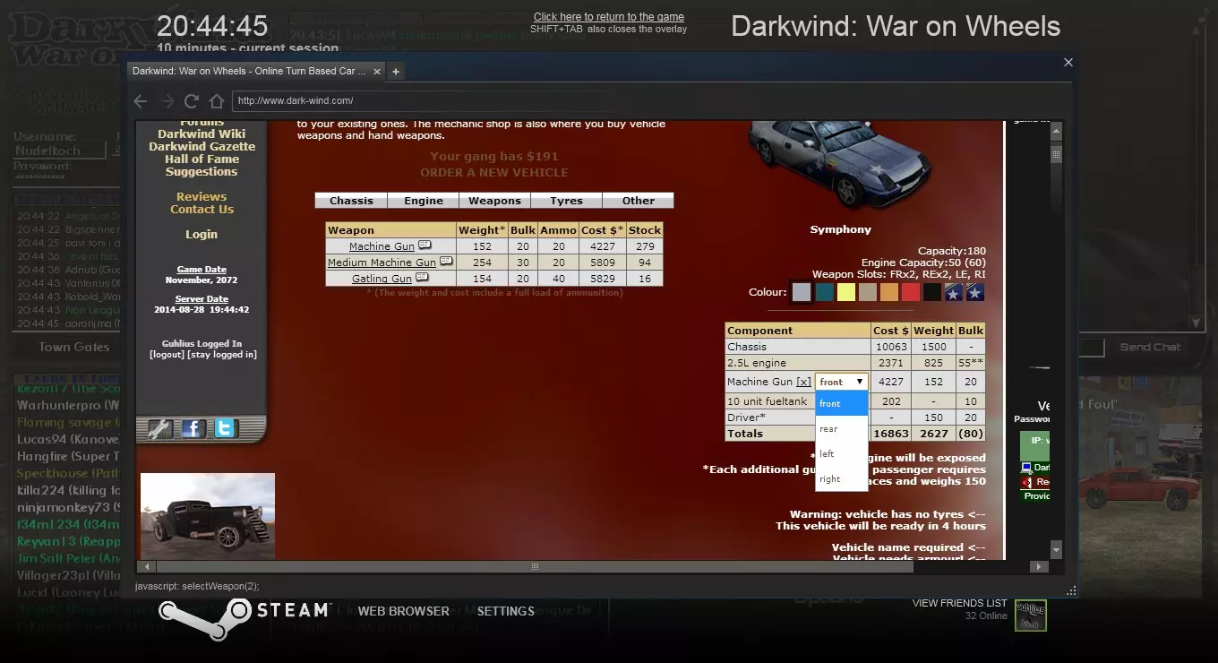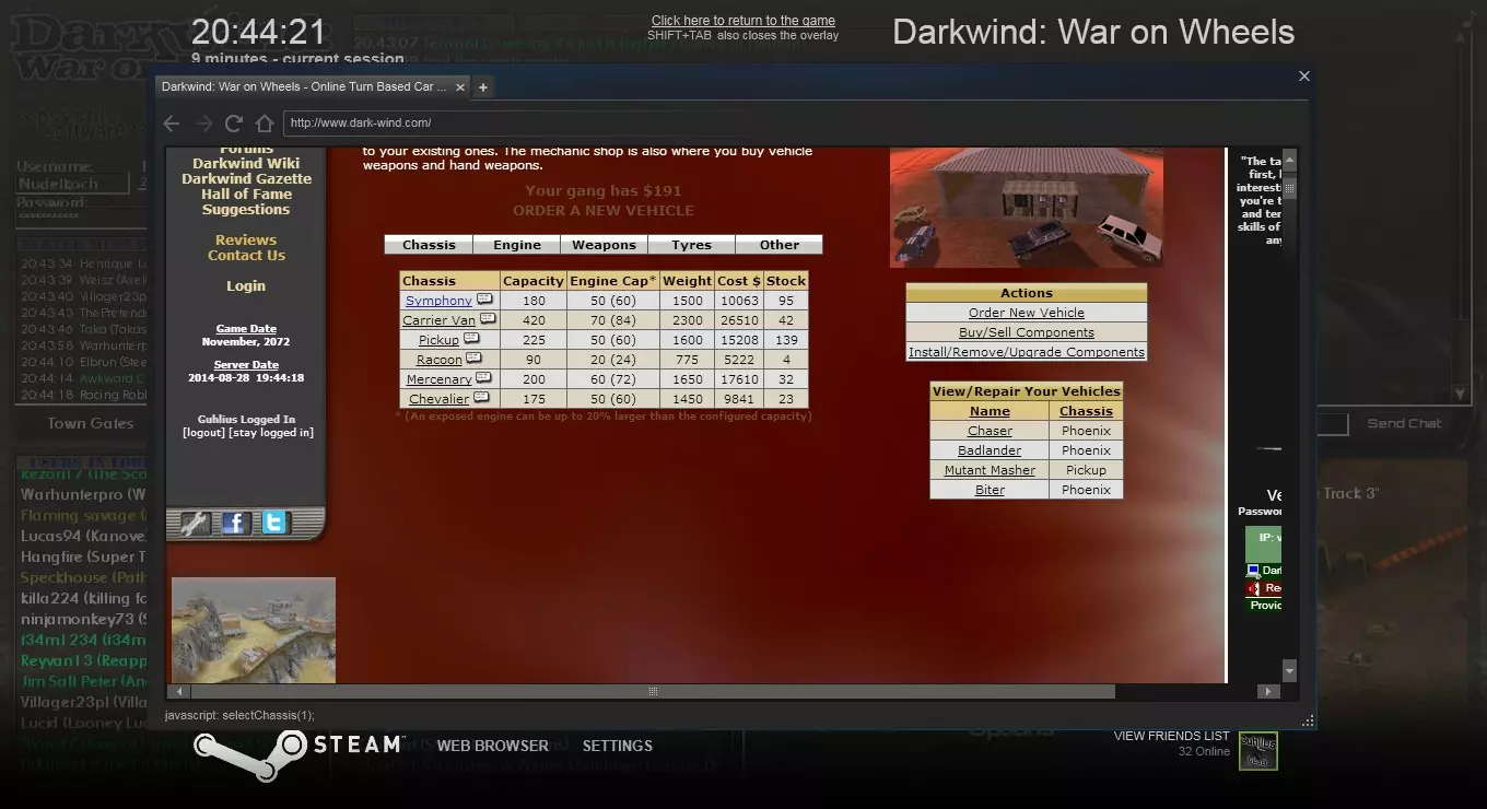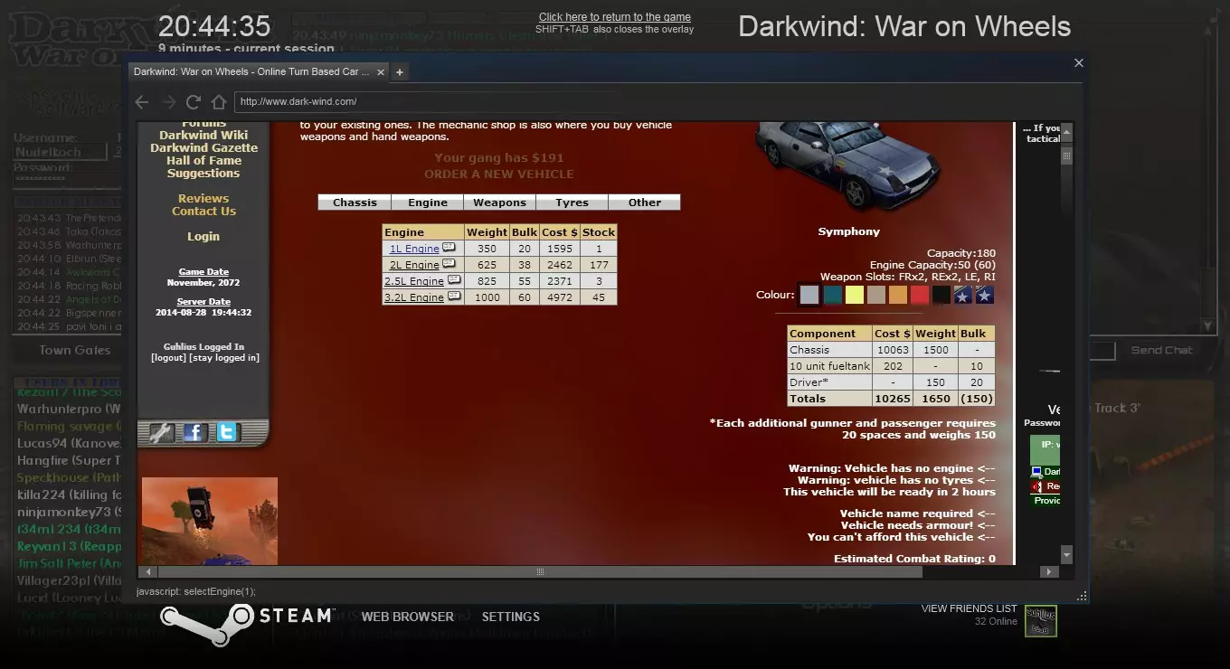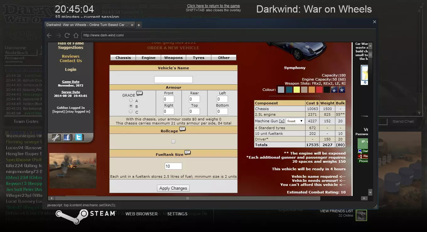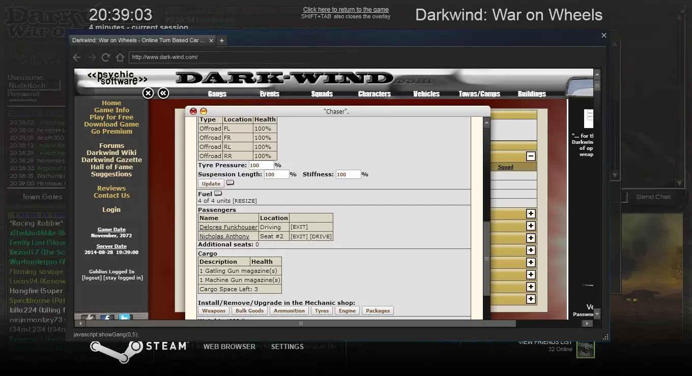 方法二 使用你设置的组合键打开游戏内浏览器,访问相关网站,或点击左上角的【Darkwind】标志。然后选择【队伍】->【搜索队伍】,输入队伍名称并点击搜索结果中的队伍。接着向下滚动,输入密码,点击【加入队伍】。