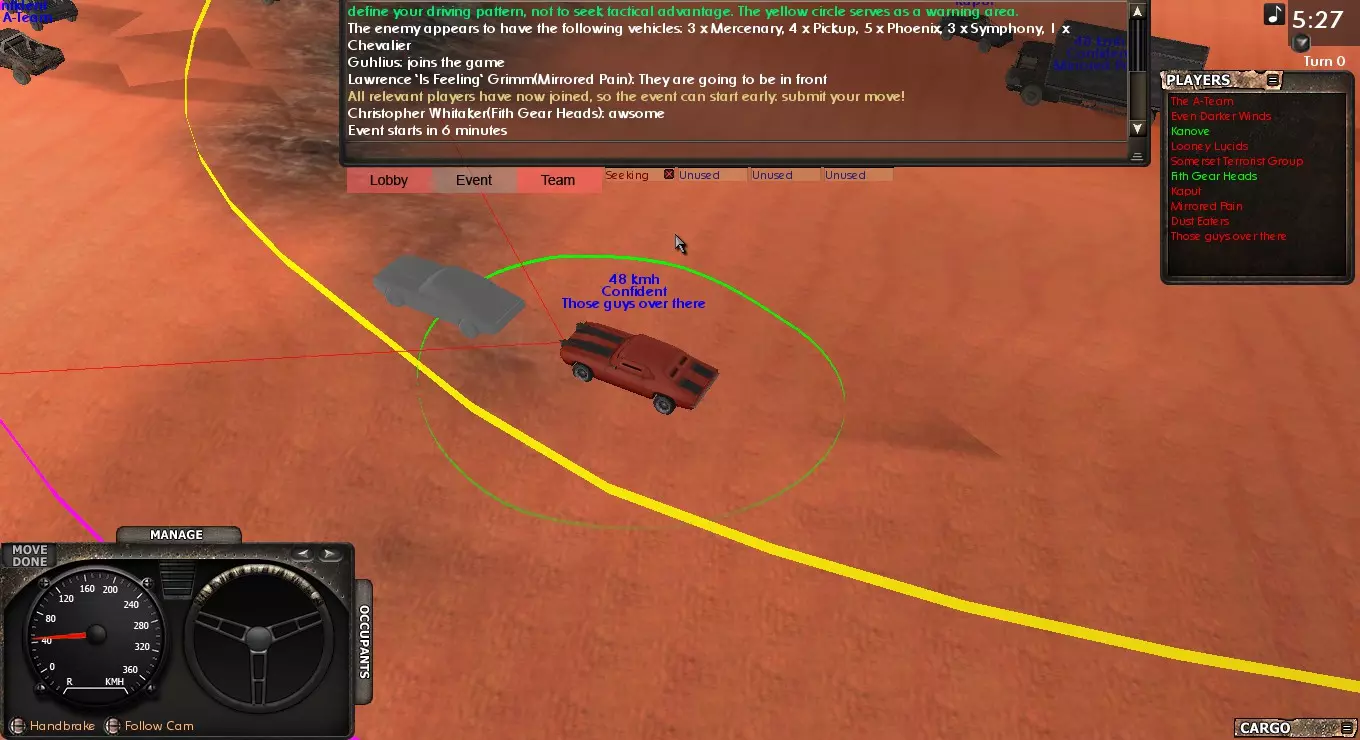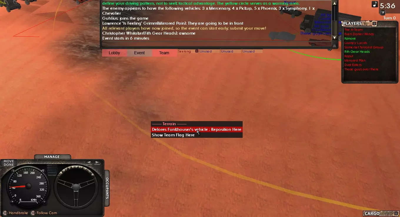 活动期间 活动开始后,你可以进行以下操作:地面上会出现两个圆圈,你可以点击自己的车辆,然后右键点击地面,将车辆重新放置在圆圈内。你还可以根据情况调整轮胎压力。 当所有人都放置好车辆并按下空格键后,活动将正式开始。