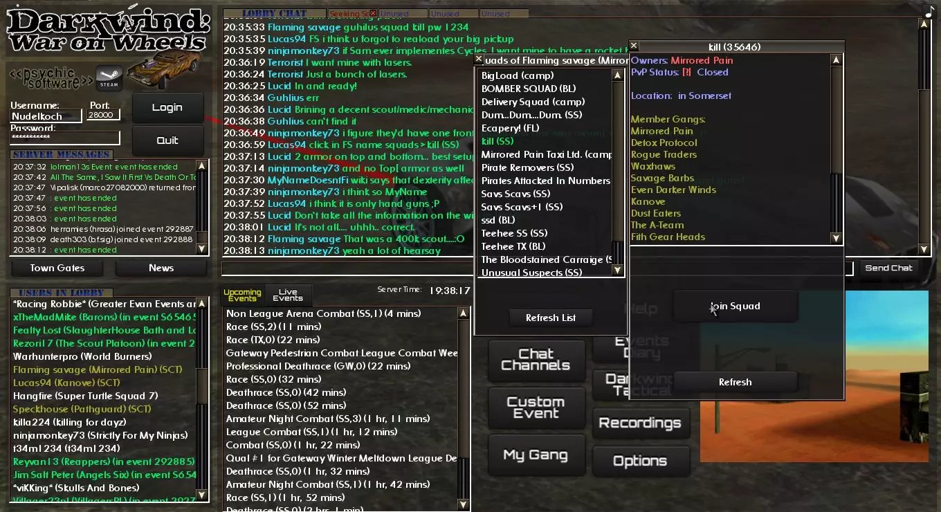 如果你拥有零件,也可以对已有的车辆进行所有这些调整。你也可以在机械师那里购买单个零件。添加装甲只需花费金钱,并且每次车辆受损后都需要重新添加。 如何加入侦察小队 首先,当你阅读本指南时,你可能从未进行过侦察。这种情况下,你可以跟随其他人,他们会帮助你并解答问题。但在这之前,你需要一辆车。你可以租一辆或买一辆。 所以问问是否有人正在进行侦察,如果你运气好,会有人回复小队名称和密码。现在有两种方法可以加入。