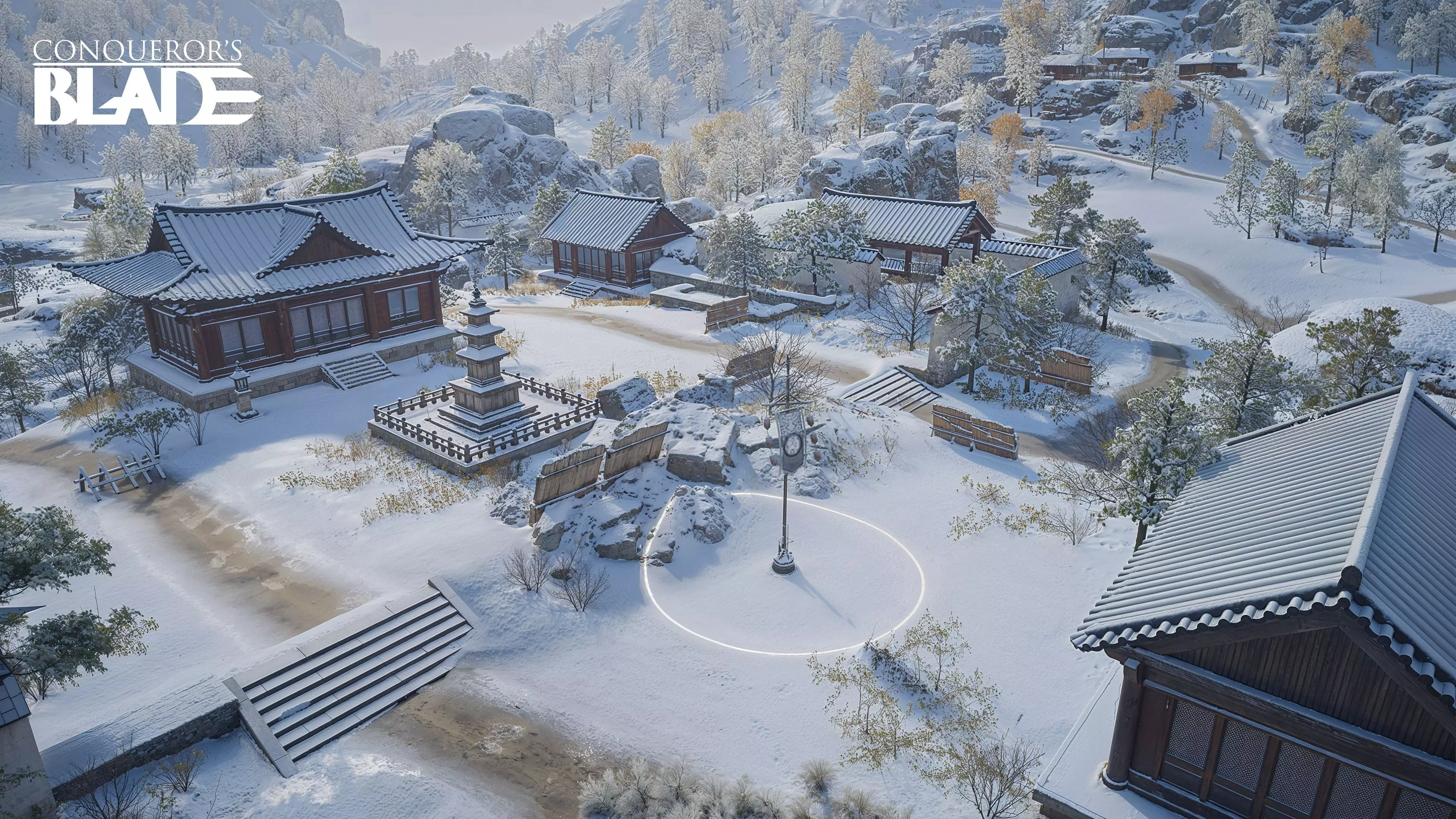 3. 雪地 一张经典的15v15野战地图。玩家可击败雪地守卫并召唤战马支援,同时利用山脊上的篝火瞬间扭转战局。