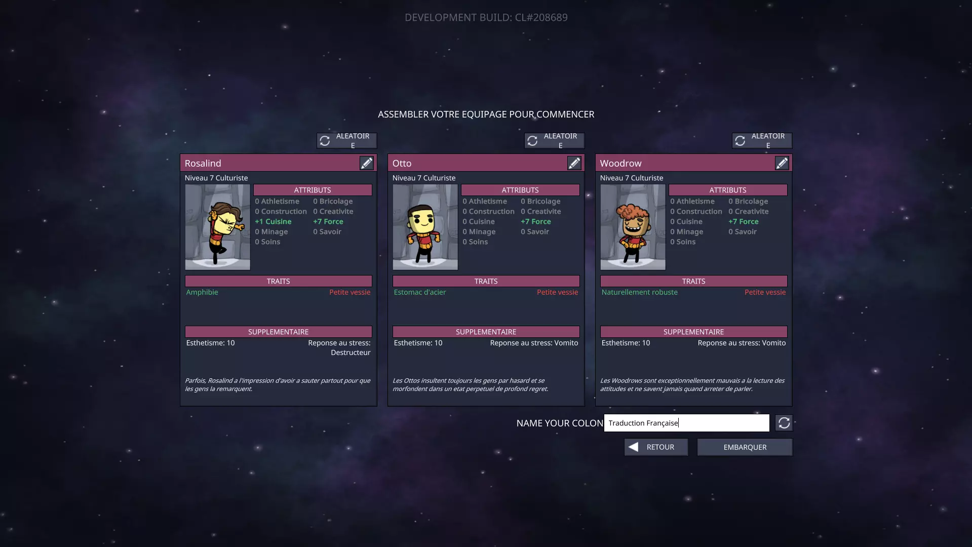 大家好,经过几天的工作,纳波和我很高兴为大家带来这款游戏的法语翻译。 可能会遇到一些错误,尤其是那些文字无法完全显示在框内的情况,这我们也无能为力。如果某些翻译看起来很生硬,或者没有显示出来(我们已经检查过,但可能有所遗漏),请告诉我们! 希望大家喜欢我们的工作。 祝大家游戏愉快! 翻译人员:Vandryel 和 Napo 校对人员:Sirdek 和 McGuffin 测试人员:KoreroK 现在可以在Steam创意工坊中获取更新和翻译!安装法语版本 如何用法语游玩: 前往创意工坊并订阅我们的页面,之后会自动完成。