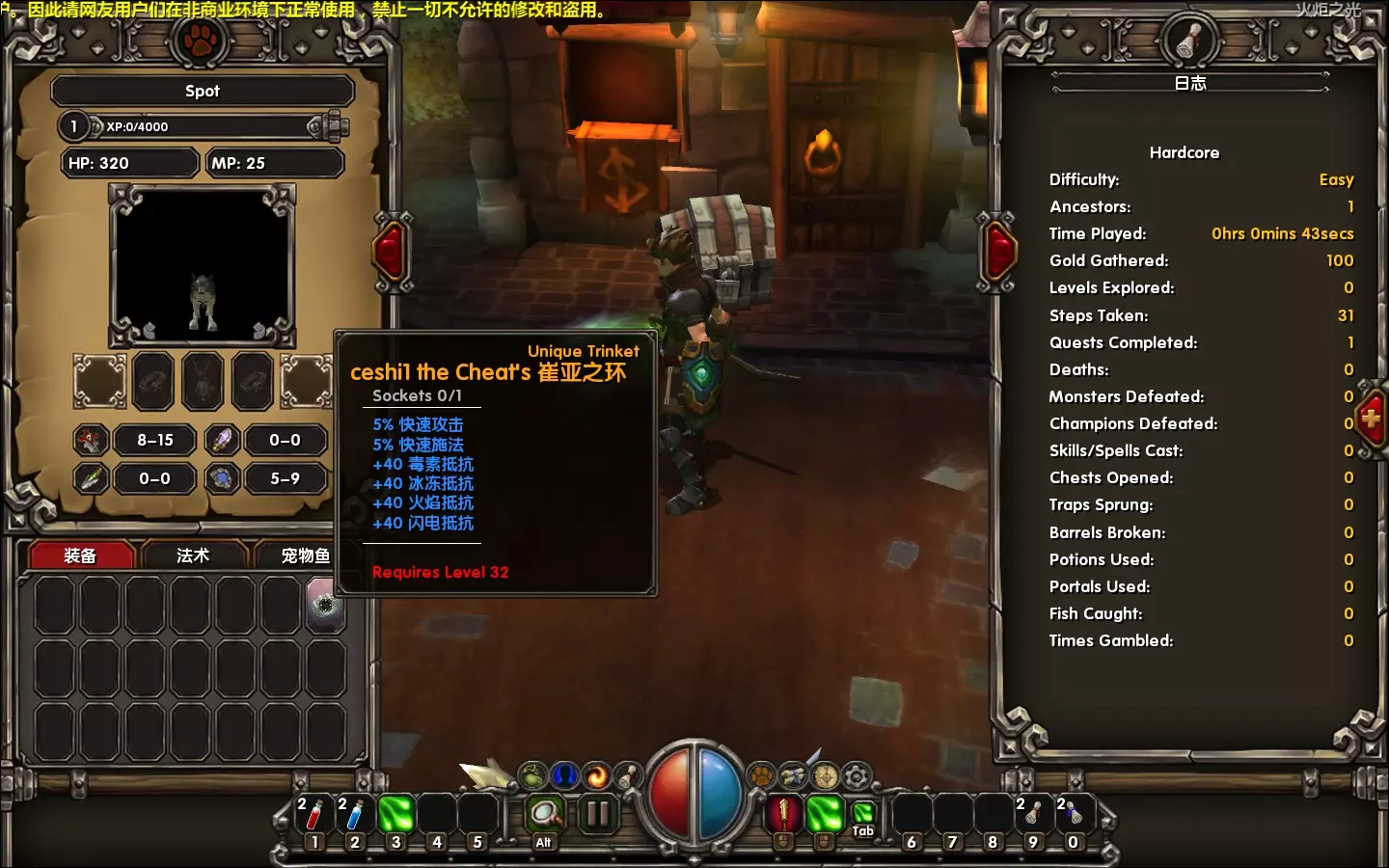 因为Steam上关于《火炬之光》的中文成就指南太少,所以我就再写一篇全成就指南指导一下各位怀旧党或者回来补票的朋友们。 该指南参考了Steam上“萌新不萌”这位朋友的部分指南,以及gardian06、Goodbye和Travelers!这几位外国朋友的全成就指南。 实测3DM的汉化可用于当前版本,可解锁成就。 3DM的汉化在装备这部分不太全,不过剧情的汉化无误,不影响正常游戏。