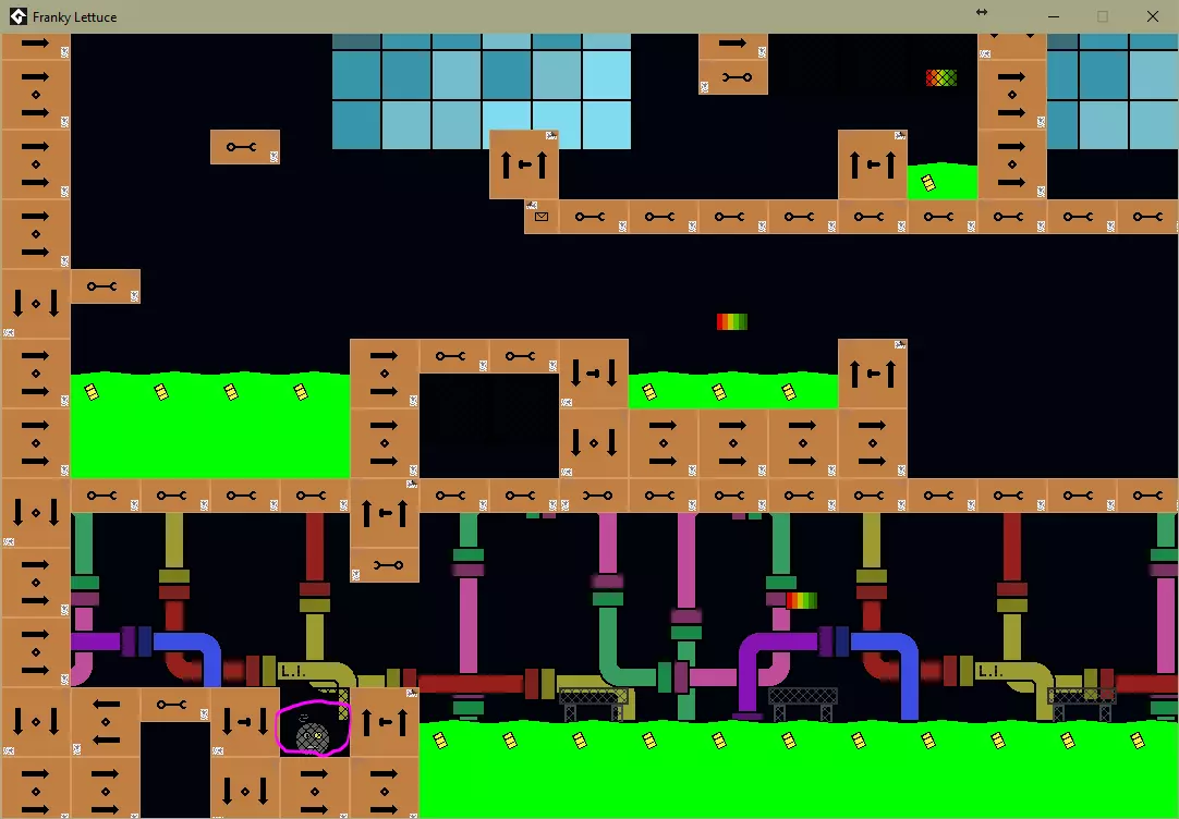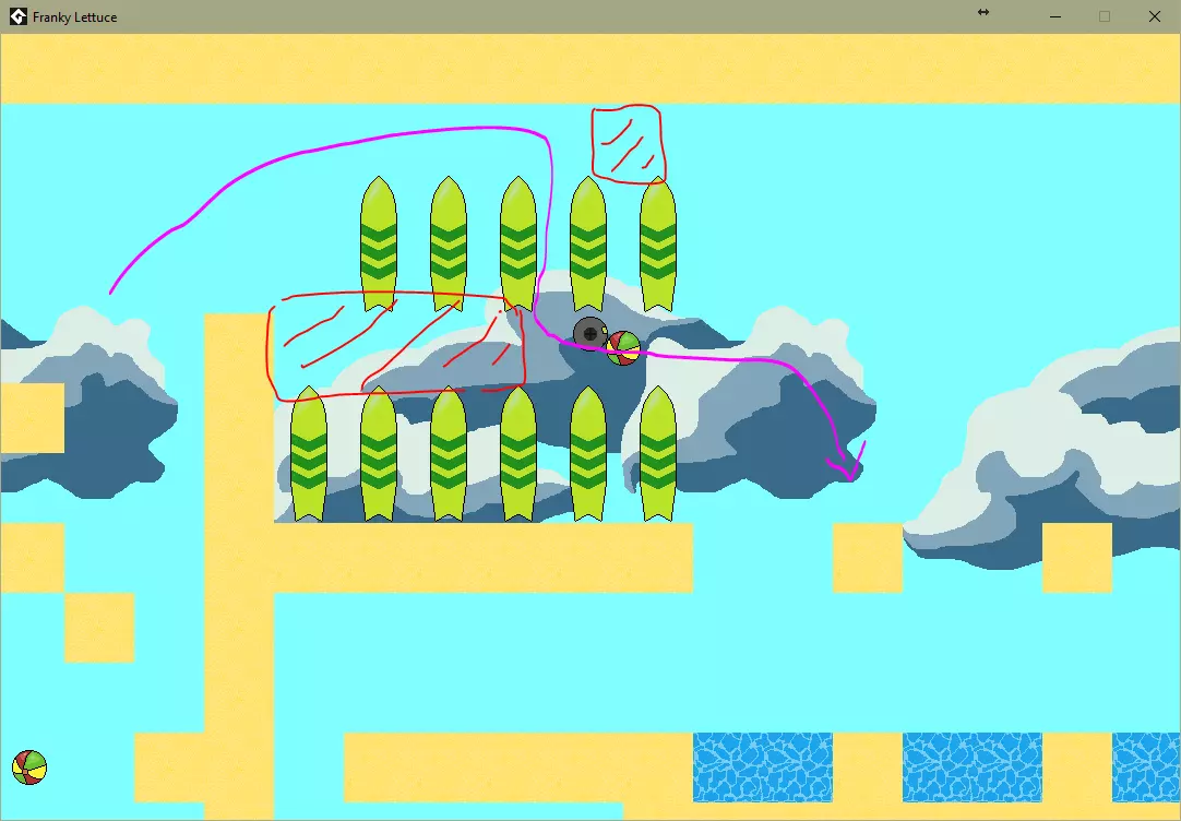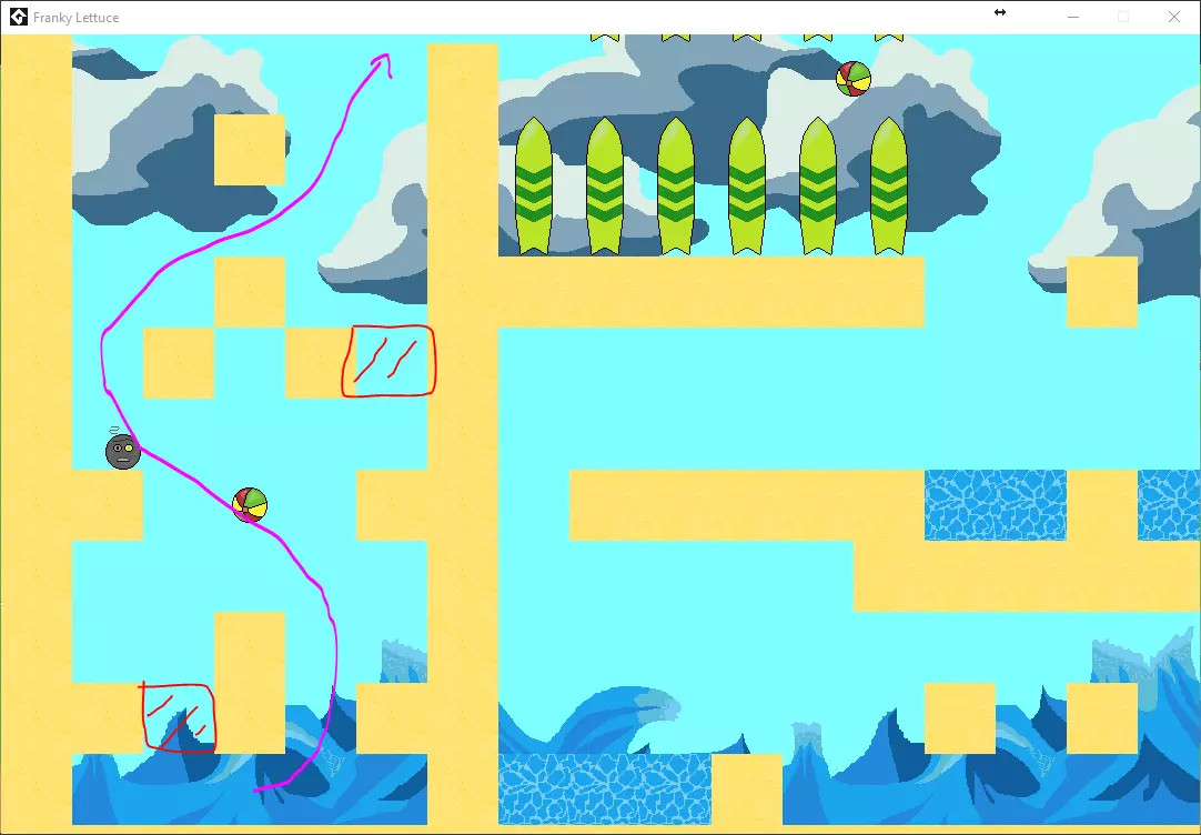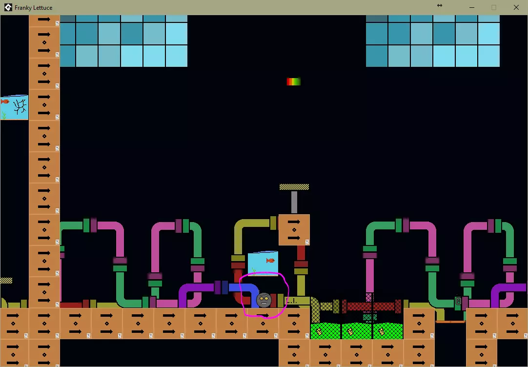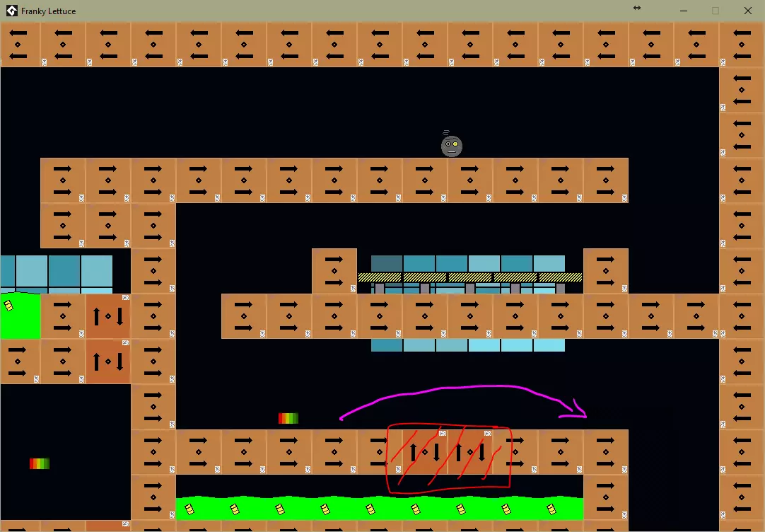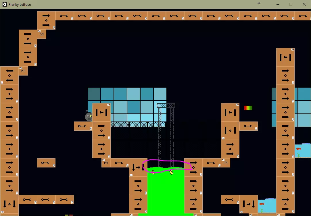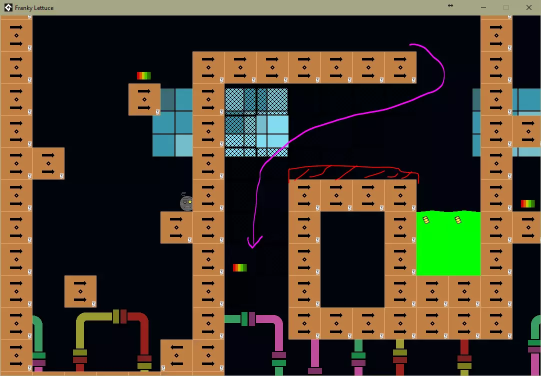 坠入放射性废料(粉色圆圈)。 关卡5 / 一个价值不菲的成就。