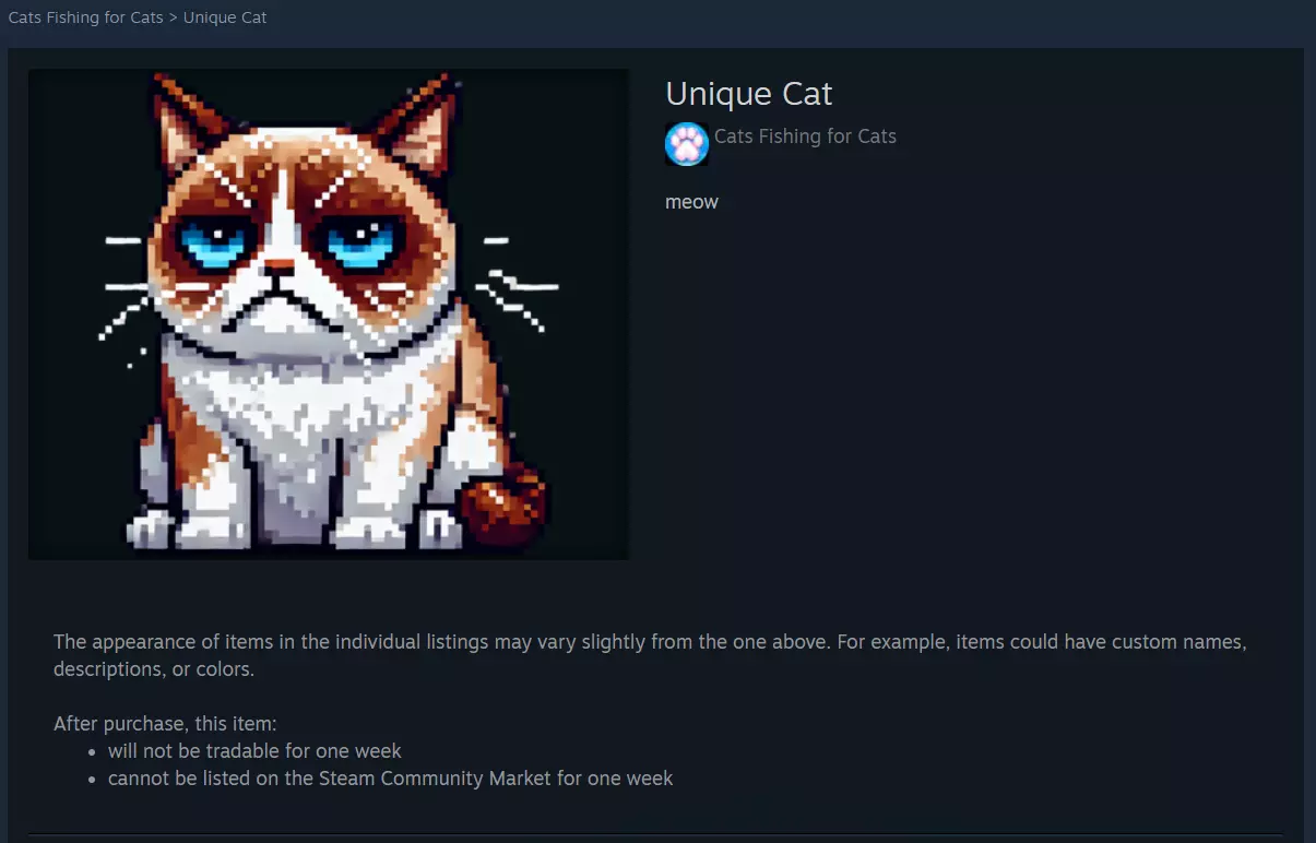 当猫咪从盒子生成器中被释放后,会自动添加到你的Steam库存中,这样就能在市场上进行交易了。