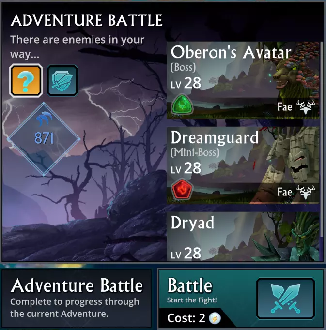 战斗 以下是战斗的顺序。整体为直线推进,包含可选支线,但没有会导致错过战斗或商人的分支路径。 1) 双足飞龙(1能量) 2) 树精(1能量) 可选 3) 地牢1(2能量)