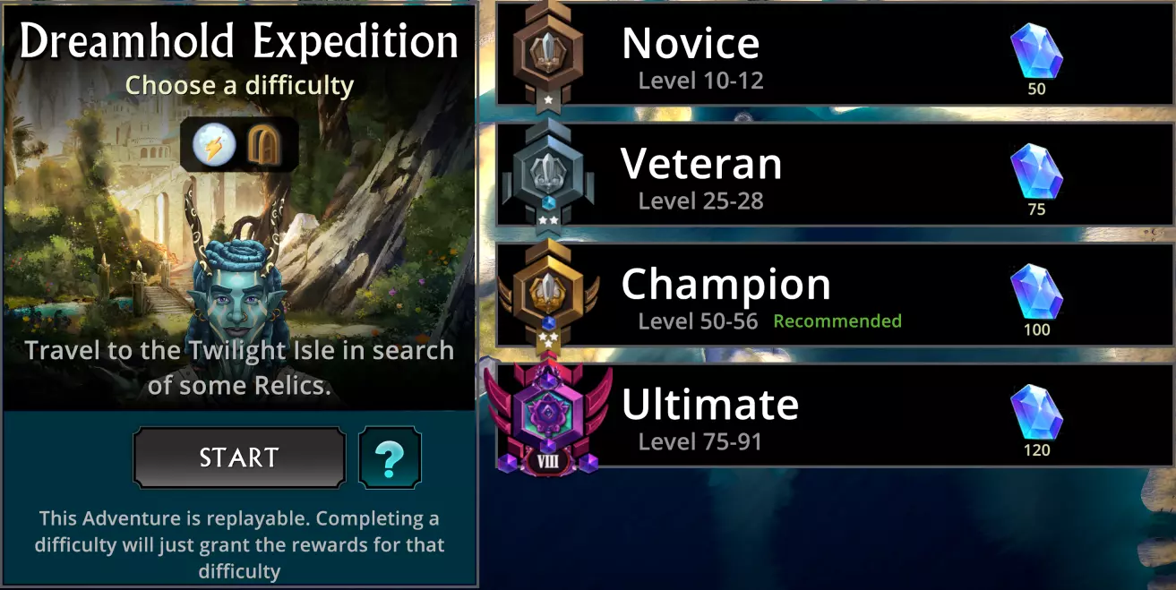 这款冒险仅提供4种难度,而非标准的5种。我不太确定《 puzzle quest 3》在冒险模式的某些选择上有何意义,但无论如何,情况就是这样。