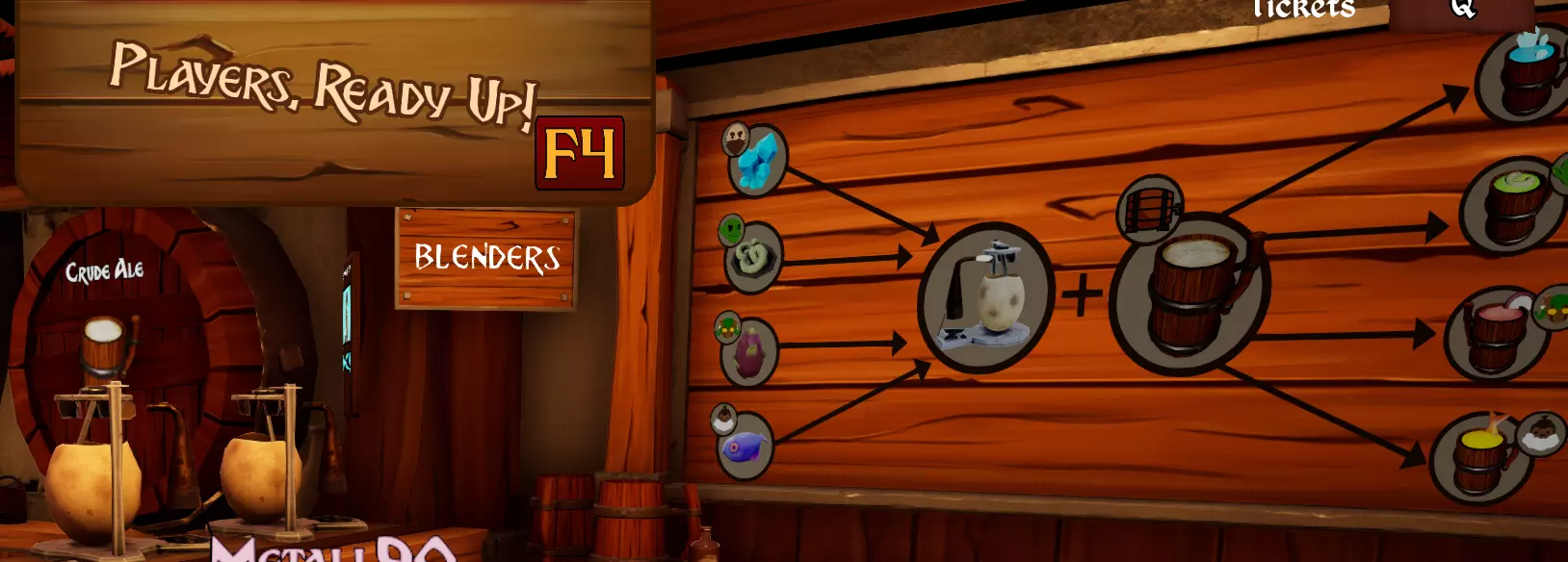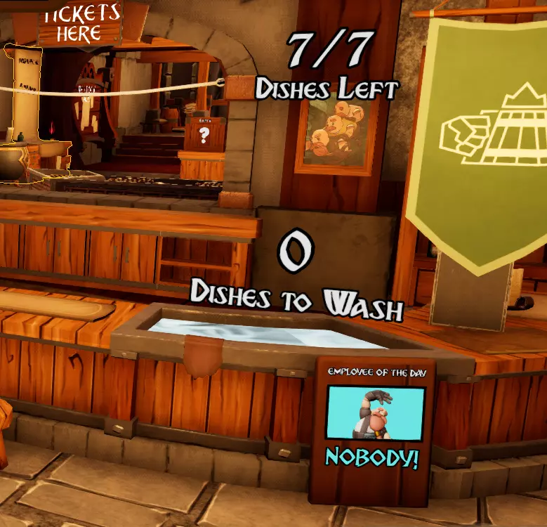 快速举例说明第二个马克杯的制作,也就是使用第二种原料,这里以生蓬普为例。 生蓬普→进行搅拌→粗制麦酒→取出。 这样你就得到第二个马克杯了!你也可以在开始前提前准备一些,并将它们留在搅拌机里,前提是你确定只需要制作这种麦酒,或者你有不止一两个搅拌机。记住,如果你需要一个已装有东西的空搅拌机,可以随时将里面的东西扔掉,但这样会浪费产品的成本。 其他策略 在最初几天了解游戏玩法后,你需要开始协作和沟通,并根据你的角色/玩法风格来制定策略。不过我可以给你一些建议!如果你们有3-4个人,一个人可以负责酿酒,另一个人可以负责为餐桌服务。通常情况下,第三人最好帮忙收拾桌子,偶尔去下面的能量室加煤。如果是四人游戏,分工类似,但需要更多人协助厨房工作。如果人数很少,千万不要升级酒馆空间,否则会很麻烦!在厨房工作的人还应负责在食物箱空了的时候补充食物,并在需要时把食物放进搅拌器。我再重复一遍:如果你们有足够的搅拌器,并且知道某个种族的顾客占比会更高(可以在左上角看到),就可以提前准备你认为需求量更大的那一半食物。负责招待顾客的人可以告诉其他人即将到来的顾客种族,而厨师(可能已经在楼下优化了食物箱的摆放,以及菜单……(食材越少,麻烦越少!)大家可以开始期待了。记住,食物是可以投掷的!如果厨师是独自一人,为了优化时间,不用来回跑动,可以利用放置订单的区域将食物扔到服务区。不要弄掉食物,而且在经过食物时,记住必须按【E】键才能递给顾客。不要跳水或攻击顾客,他们会生气的。 如果是5人或6人游玩,我建议尽快购买酒馆升级,这样能获得更大的空间。但要记住!食物需要传递的距离会更长!不过,这有助于更好地分隔不同种族(的顾客),方便送餐。引用自Thorm Irongut: 熟食可以放进箱子里,这对于为龙人准备焦糊食物非常有帮助(你可以在开始新的一天前就做好准备)。 食物放在背上不会变质,背上常备一份熟食,上菜时再更换(鼠标滚轮可切换手持物品)。 看起来银色座位的顾客会支付1.5倍费用,金色座位的顾客则支付2倍费用。 升级并铭记过往 记得进行升级。关于升级我就不多说了,因为在接下来的日子里它很可能会有所改动。不过,你可以在厨房和能源/木炭室之间的房间里了解升级相关内容。在那个房间里,你还可以拿到一把 引用自ethonk: 仅用于战斗的锤子。锤子无需固定座位,也不会加快修复速度,但它拥有更大的攻击范围,并且对所有目标(冰墙和敌人)造成的伤害是普通拳头的两倍。不过,徒手攻击也足够好用。