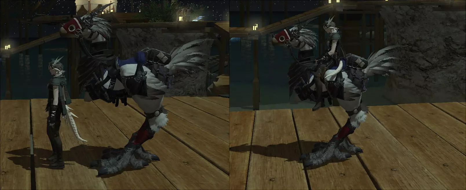 所有自定义选项在你的陆行鸟骑乘和未骑乘状态下均会显示。 要改变陆行鸟的颜色,你需要将其安置在马厩中,并按特定顺序喂食特定食物来改变毛色。 务必按正确顺序喂食,以避免出现不理想的结果,因为如果颜色不符合预期,你将不得不重新开始整个过程。 喂食零食后,染色过程需要6小时。在此期间不要将陆行鸟从马厩中取出,否则染色进度将重置。只有当你在喂食顺序上出错并希望重新开始时,重置才有用。获取用于改变陆行鸟颜色的零食有多种途径: 1. 园艺种植和市场板购买,这是常规方式。 2. 可在龙堡内陆低地(X:31.6,Y:22.9)的NPC埃尔沃瓦处接取以下任务: - 57级任务【陷阱布置】:奖励可选择15个泽尔帕特苹果、15个多玛李子或15个马穆克梨。 - 57级任务【害虫防治】:奖励可选择15个瓦勒果、15个奥·哥摩罗莓或15个谢尔达莱菠萝。 - 57级任务【正确的一步】:奖励1个汉柠檬。 汉柠檬可用于将陆行鸟的颜色恢复为初始的沙漠黄色,且只需喂食一次。 鸟甲: 装备鸟甲是另一种自定义陆行鸟外观的方式。游戏中共有88种鸟甲,可通过多种途径获取。部分陆行鸟装甲需要用现实货币购买,部分可通过制作或从市场板购买获得,还有一些可通过命运任务或其他货币兑换获取。 初期容易获取的陆行鸟装甲可在格里达尼亚旧街(10.6,6.2)的乔纳萨斯成就兑换处获得。他提供3套完整的陆行鸟装甲和1个头部装甲,只需消耗少量成就点数。 要装备陆行鸟装甲,需打开伙伴菜单。 你可以在外观窗口的装备栏中装备陆行鸟装甲。可以随意搭配不同的陆行鸟装甲,打造独特外观!