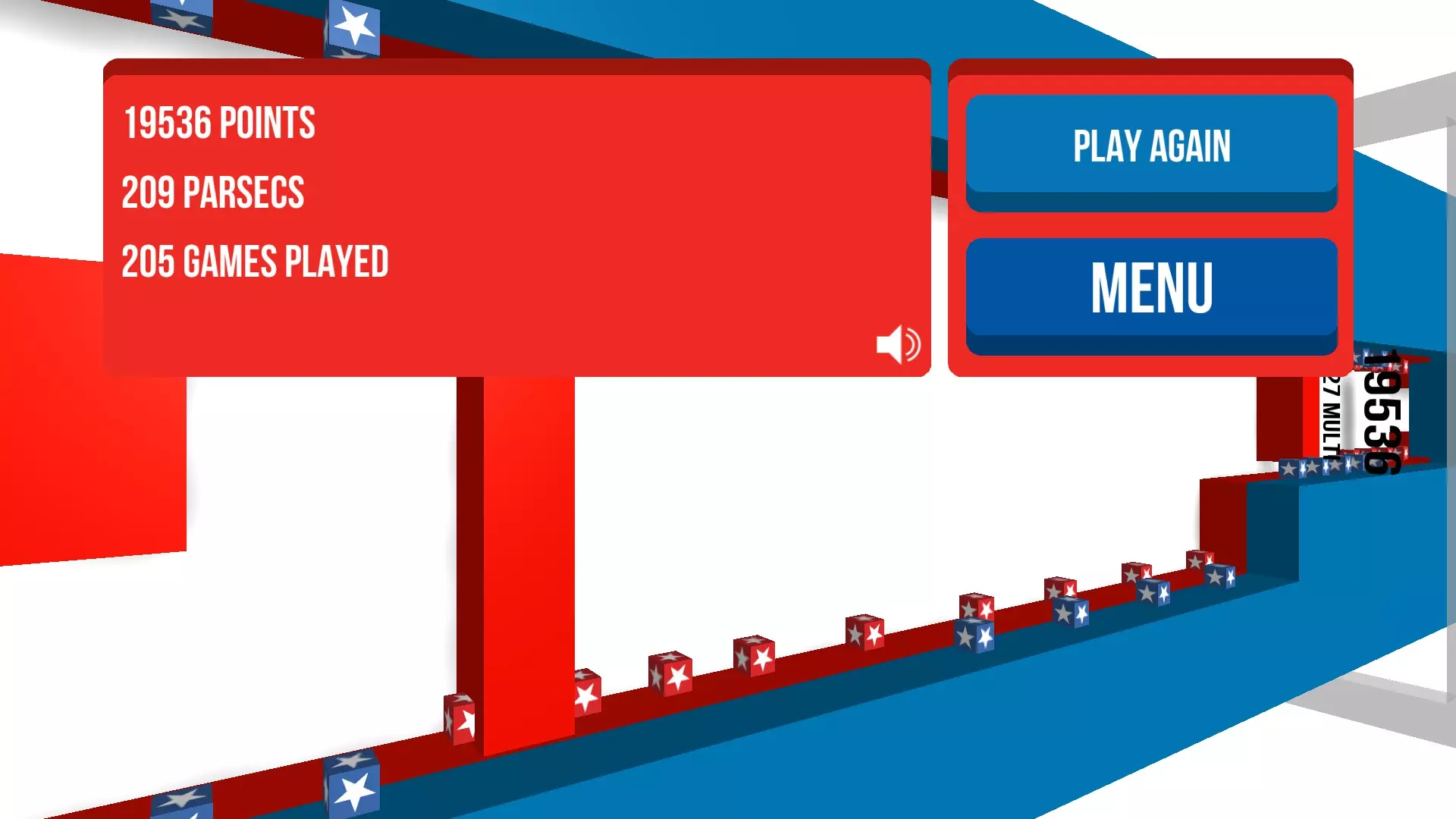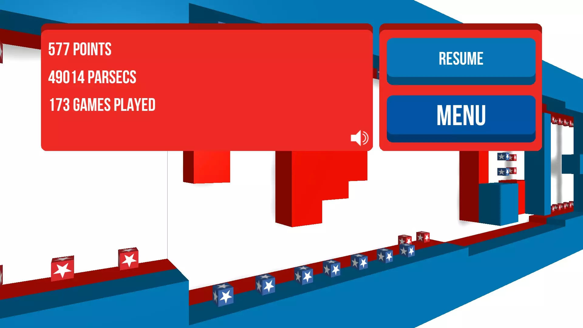 选择【再次游玩】按钮(如上图所示)将会清除你当前的进度,你必须重新开始。为避免重置距离计数器,请务必(我重复一遍,务必)选择【菜单】按钮。 积累10千秒差距和/或50千秒差距的最简单方法是,在游戏刚开始时就暂停当前游戏进程。暂停图标可在下方截图中看到,位于右上角生命值数量的上方。