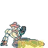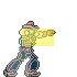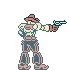 Heavytex的投射物。它以向下的角度飞行,但仍能覆盖整个屏幕的距离。一个建议:不要使用轻版。即使在最远的距离,命中后你会处于非常不利的负帧状态,被格挡时负帧状态会更糟。虽然重版被格挡时同样负帧严重,但至少命中时能击倒对手。Overdrive版本飞行速度更快,但别指望用它来赢得任何投射物对决。 Howdy(下,下,选择)