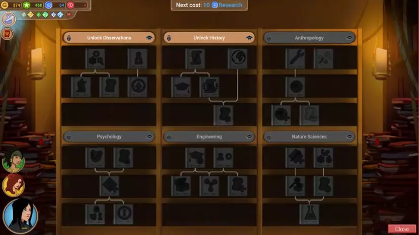 当研究论文界面左上角的烧杯发光时,这是提示你“可以使用当前持有的研究点数来推进研究”。推进研究能获得各种奖励,比如学习技能、为特定获胜方式增加代币等。不过要注意,每次研发所需的研究点数都会上涨。游戏中有6个研究领域,解锁领域本身就能先获得一个奖励,之后可以在该领域内通过树状结构逐步解锁更多内容。每个领域由5份论文组成,因此要完成一个领域,需要进行初始解锁加上5次研究,总共消耗6次研究点数。完成奖励也很重要,所以要好好留意。玩过《文明5》的玩家应该会比较容易理解。是先以完成一个领域为目标比较好呢?还是只获取解锁奖励,然后分别获取看起来必要的部分比较好呢?根据你所追求的策略不同,并没有单一的正确答案,不妨多尝试一下。不过似乎存在一定的指导方针(具体将在提示部分后述)。 雇佣随行人员:随行人员能够提升探险过程中获得的代币本身的价值。辅助人员会分别提高遭遇、收集、战役、研究这几项的价值。虽然每位雇佣人员带来的提升幅度较小,仅为1 - 3,但考虑到能获得的代币数量,整体上会产生相当大的差距。 专家则有所不同,其中有些专家也能提升代币本身的价值,但基本上他们的作用是增加获得代币的途径。通过【激进】【诡诈】【友善】中的任意一种方式获胜可额外获得1个代币,进入特定的轮盘挑战也能直接获得1个代币。基本上在这款游戏中(如果你实际游玩过,在第一次探险时应该已经体验过),即使触发事件,能否获得代币或宝物也取决于轮盘的结果。不过,如果能善用专家,只需留意地图,或者按计划的方式获胜,就能不受运气影响,有针对性地收集资源,这一点非常强大(研究论文也是如此)。此外,特定专家还能为队员传授新的技能。这样一来,能够进一步提高探险时轮盘的成功判定,还能提升代币的获取率,并且可以追求与研究报告加成的协同效应。不过,相应地,专家的成本较高,而且每个层级中,3个人里只能雇佣1人,因此需要有计划地进行选择。当然,一开始不可能知道什么是有用的,建议先完成几次探险活动,之后了解到下次探险可能需要的技能等,尝试各种方式会很有趣。顺便一提,随行人员最高可以解锁到4级。世界上还有另外两个类似随行人员中心的场所,在完成第2次和第4次探险归来时就能解锁它们,因此可雇佣的候选人员后续会逐渐增加。你手中用于购物的黄金可用于购买装备以及提升商店等级,除此之外没有其他用途(探险途中虽然有一些可以购物的事件地点,但并不那么重要)。黄金当然可以保留到下一次探险后使用,但完成下一次探险后,你肯定能获得更多的黄金,所以尽量将现有黄金全部用完,为眼前的探险做好准备(这条原则同样适用于状态值)。装备大致分为三类: ・饰品 商店中最初仅陈列2种饰品,但通过升级商店可以增加种类。 初始状态下只能装备1个饰品,随着等级提升,饰品栏最多可增加至2个(不同角色的等级要求不同)。 装备饰品后不仅能增加1个技能,还会附加其他效果,仔细观察的话还能发现参数也会略有提升。 购买与已掌握技能重复的饰品会很浪费,所以要仔细比较。 (例如:希尔德加德初始就拥有【外交家:定制】技能,因此【翻译指南】饰品对她来说没有意义;夸梅虽然是外交家职业,但初始应该未掌握【定制】技能,所以……)购买这个能让外交官等级提升一级,效果非常显著。武器主要有两类:一类是能提升攻击的手套,另一类是能提升口才的书籍。通过升级商店,可以购买到性能更高的武器。防具方面,主要有提升防御的盔甲,提升口才防御的戒指或护身符,还有侦察兵专用的靴子系列,这类靴子以提升坚毅为主,同时也能适当提高攻击和防御。同样,升级商店后可以买到更好的防具。技能很重要,附加效果的抗性也不能忽视,但提升攻击和防御这类基础属性本身,对战斗中的生存也有很大影响。如何在有限的资金内进行周转是个令人头疼的问题。之后,根据首次探险获得的资源做好准备,就可以正式出发进行下一次探险了。同样地,完成第二次探险后,接下来就能选择其他的探险候选地。就这样不断重复准备与探险,环游世界,朝着成为全球最著名的探险家的目标前进吧! 小贴士 接下来将为那些想要从新手毕业、迈向中级水平的玩家介绍一些小技巧。这些内容参考了海外玩家以及挑战高分常客们在论坛中的讨论。