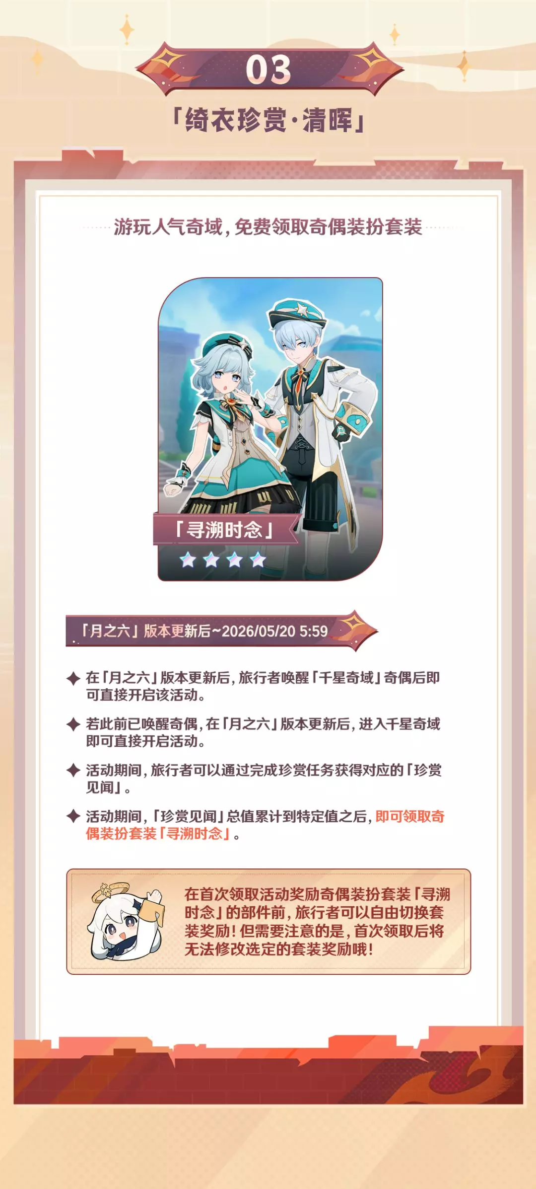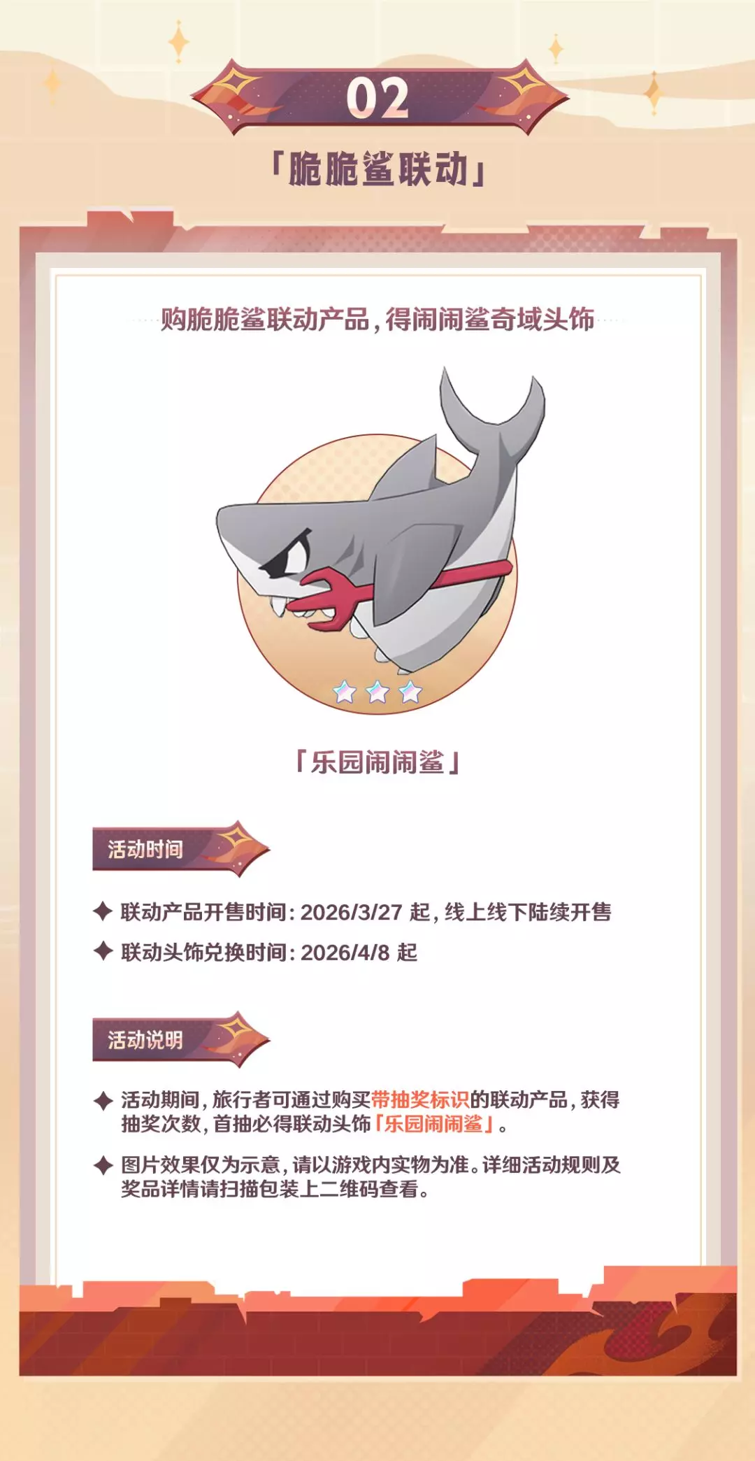 原神千星奇域「鳞锋赛季」即将开启,赛季含准备、游玩、展示三个阶段,还有脆脆鲨联动活动,同时上线多项福利活动,完成任务可领奇偶装扮、奇丽凝晶等奖励,也可通过升级纪游、颂愿、商城购买获取各类限定套装。