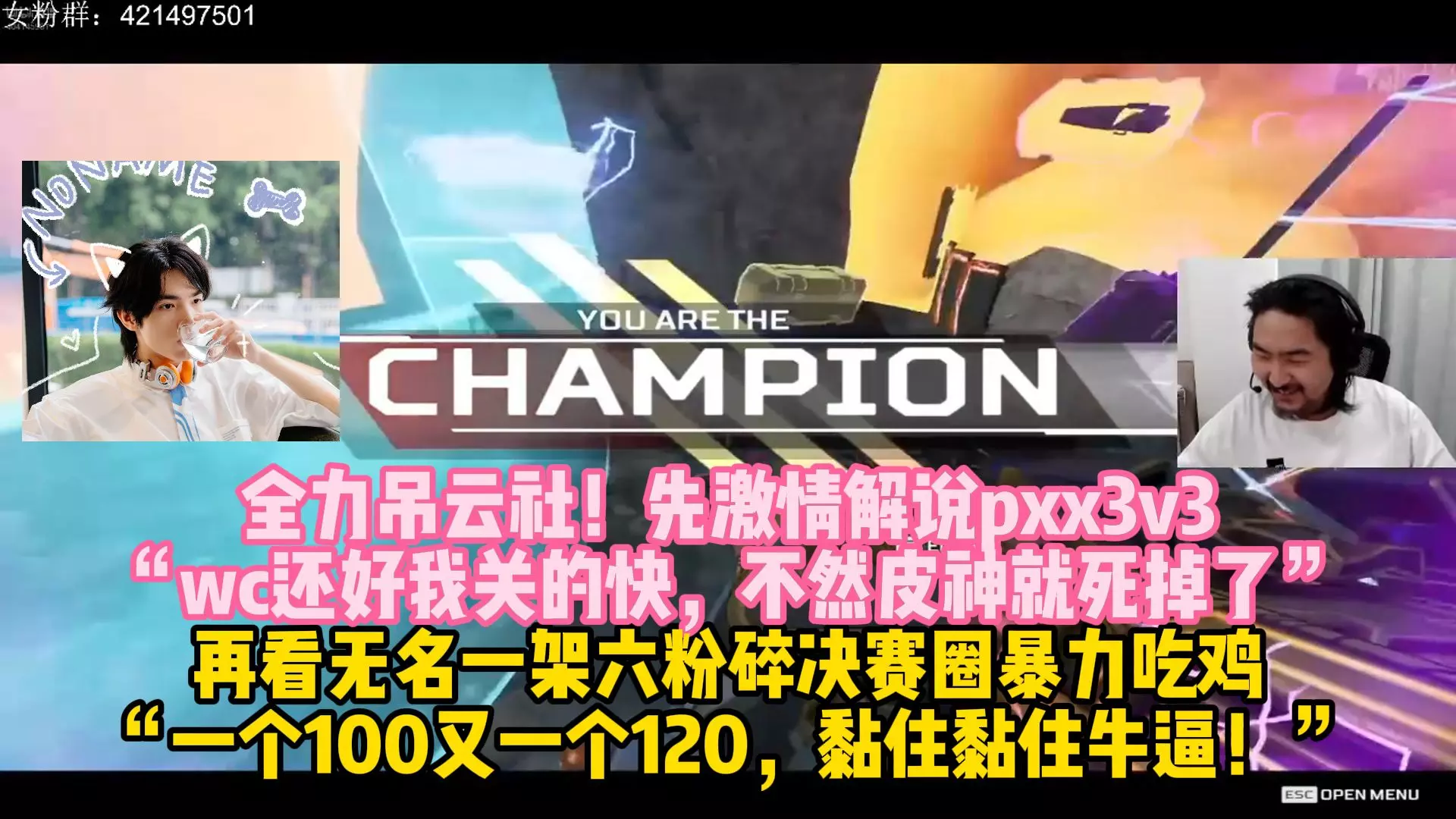 老吊在直播间激情解说《Apex英雄》pxx的正面3v3对局,皮特打出一波伤害后光速退出直播间,还戏称还好关得快不然脾肾都要“死掉”,全程趣味拉满。