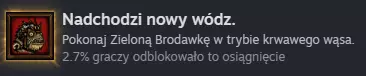 在她身后会出现一个秘密房间,里面有通往一间相当阴森实验室的楼梯,在那里我们会遇到一个同样阴森的居住者。当然,这个居住者不会乖乖交租,会立刻张牙舞爪地向我们扑来,所以我们不得不采取自卫行动,将其击败。这是一场标准的Boss战。击败他后,我们将获得成就【Nadchodzi nowy wódz!】。