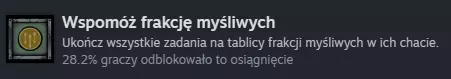 那么,亲爱的同伴,或者说不幸的伙伴们!经过这大约10-12个小时的苦战,你们现在可以给自己贴上一颗五角星,开一瓶香槟,甚至跳段霹雳舞庆祝一下了! 这是基础版的最后一个成就,堪称鼠族传承的点睛之笔! 说实话,我甚至不确定这个成就是不是随着DLC更新了6个新成就XD 不过,先不管这些,我们继续前进,因为这还不是终点! DLC成就 《钢铁之尾》的优秀且高产的开发者们,怀着无尽的善意,为我们带来了免费的额外内容,其中包括一系列任务、几个额外的Boss,以及多达6个成就!这部分内容大概会花费你们额外一小时左右的游戏时间,也可能更少。