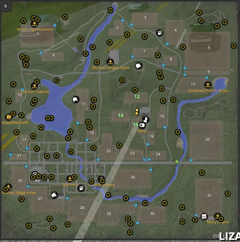 黄金矿石位置 这是一张地图,标记了100个黄金矿石位置中的约80个。在20号田地上方的林区内,大约有5到7个黄金矿石。 和前作一样,黄金矿石无法在多人模式中找到。不过,找到所有黄金矿石的奖励100万美元可以在多人模式中使用。