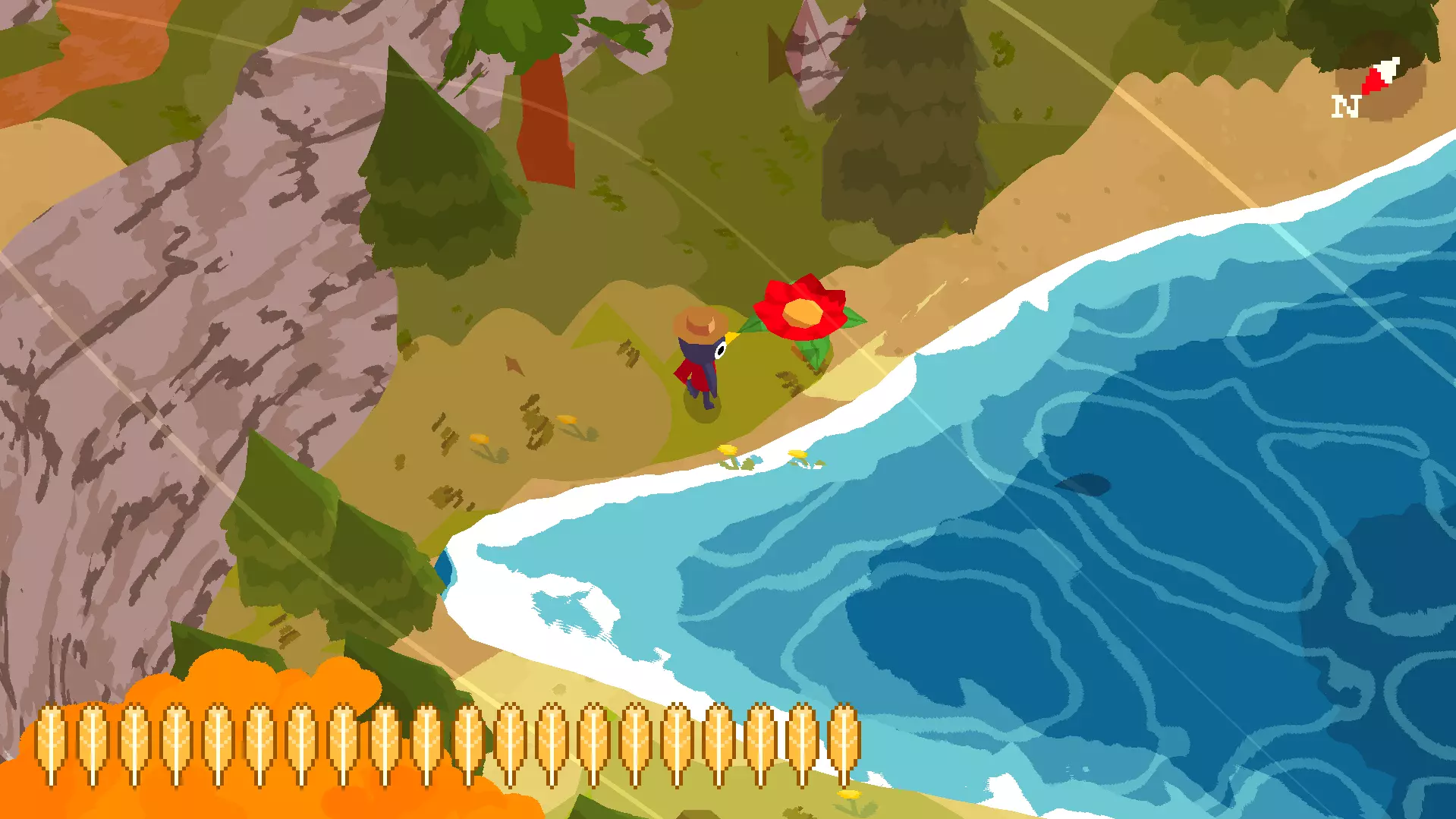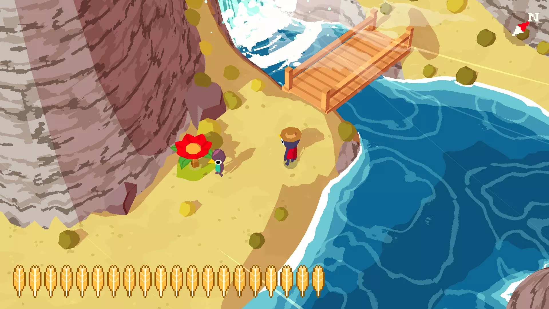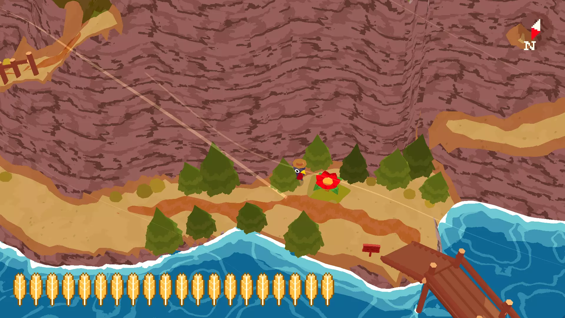 植物22 要找到这个植物,你需要前往租船点。在那里,你会发现北边有连接其他岛屿的小桥。沿着小路和这些桥走,就能找到第22号花朵。