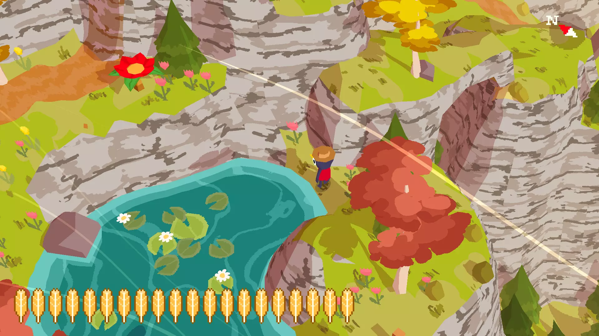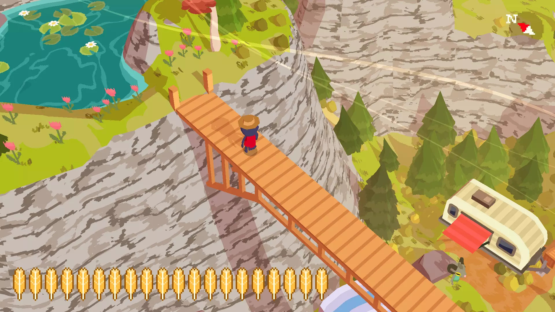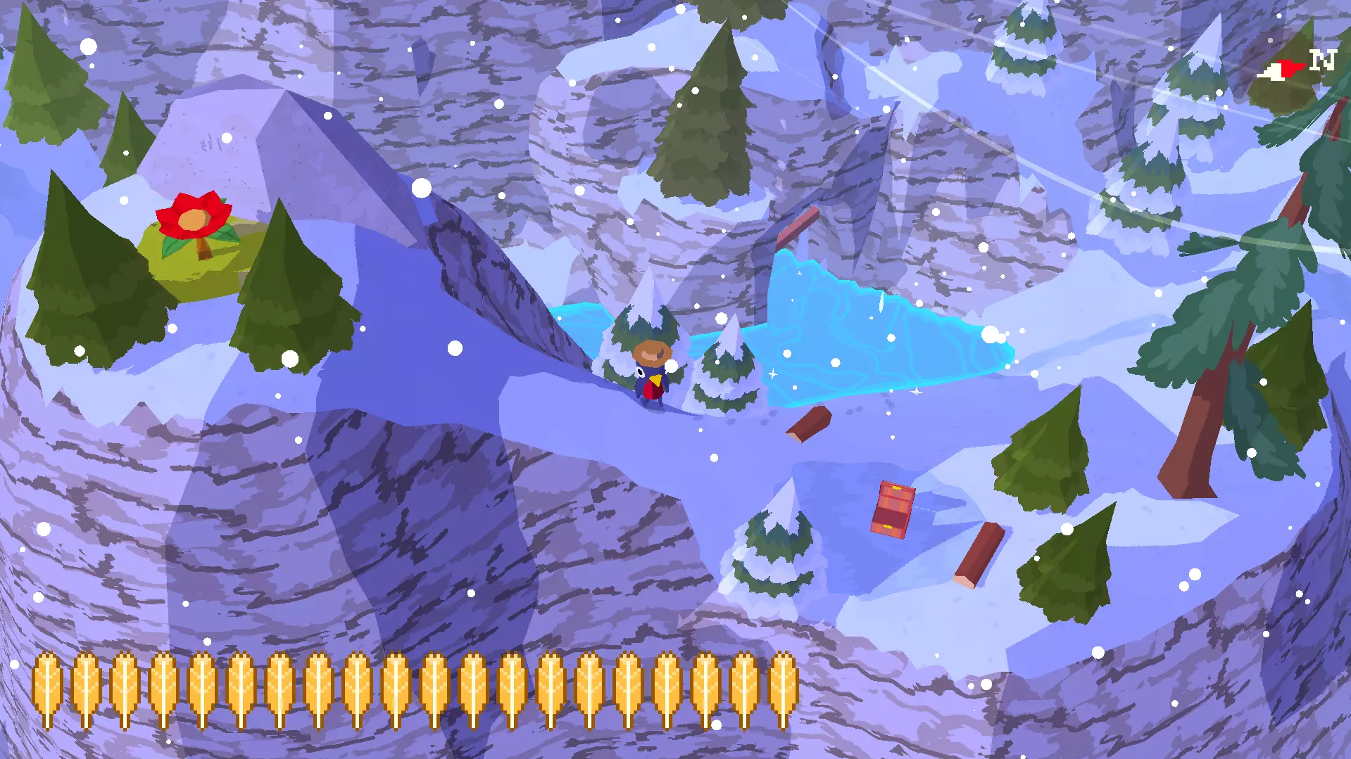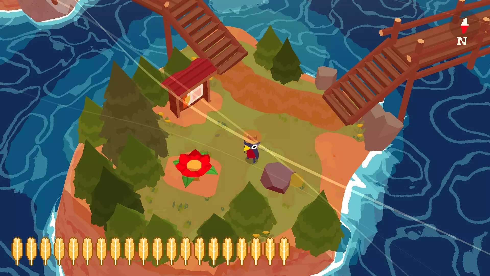 植物22 要找到这个植物,你需要前往租船点。在那里,你会发现北边有连接其他岛屿的小桥。沿着小路和这些桥走,就能找到第22号花朵。