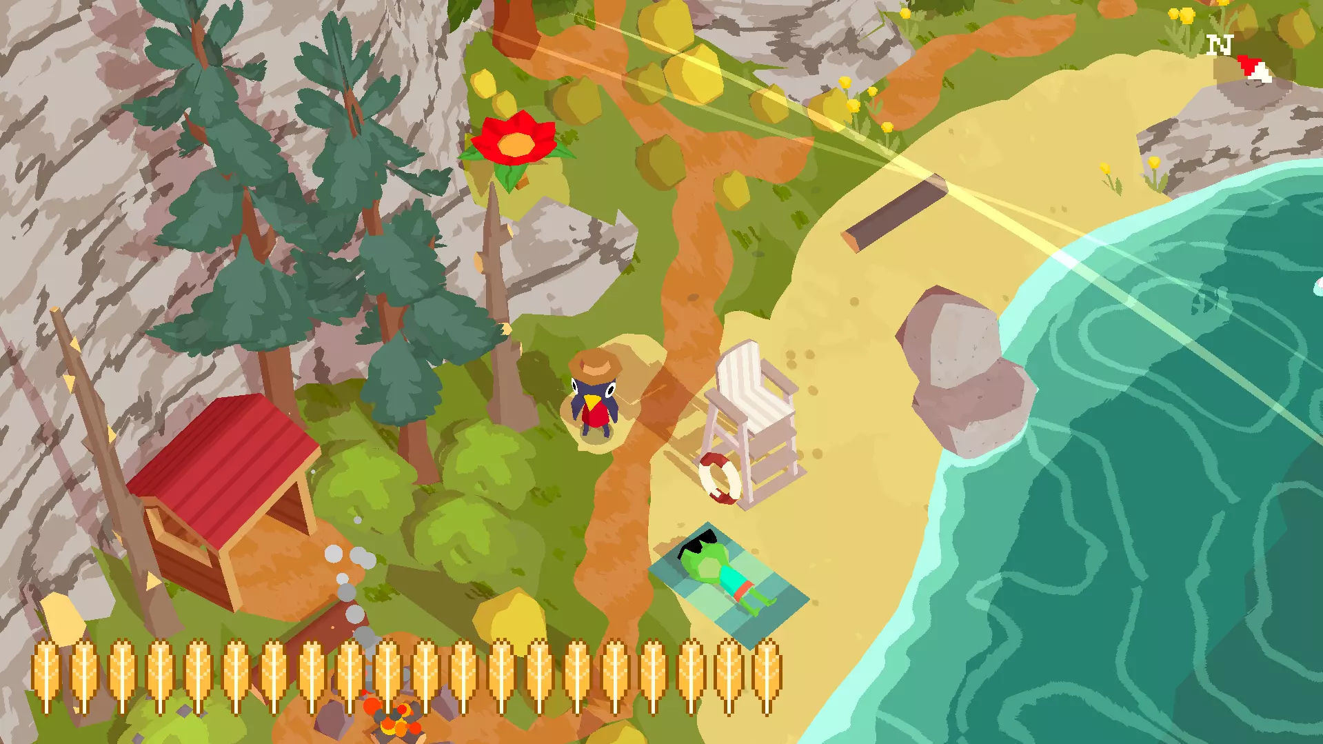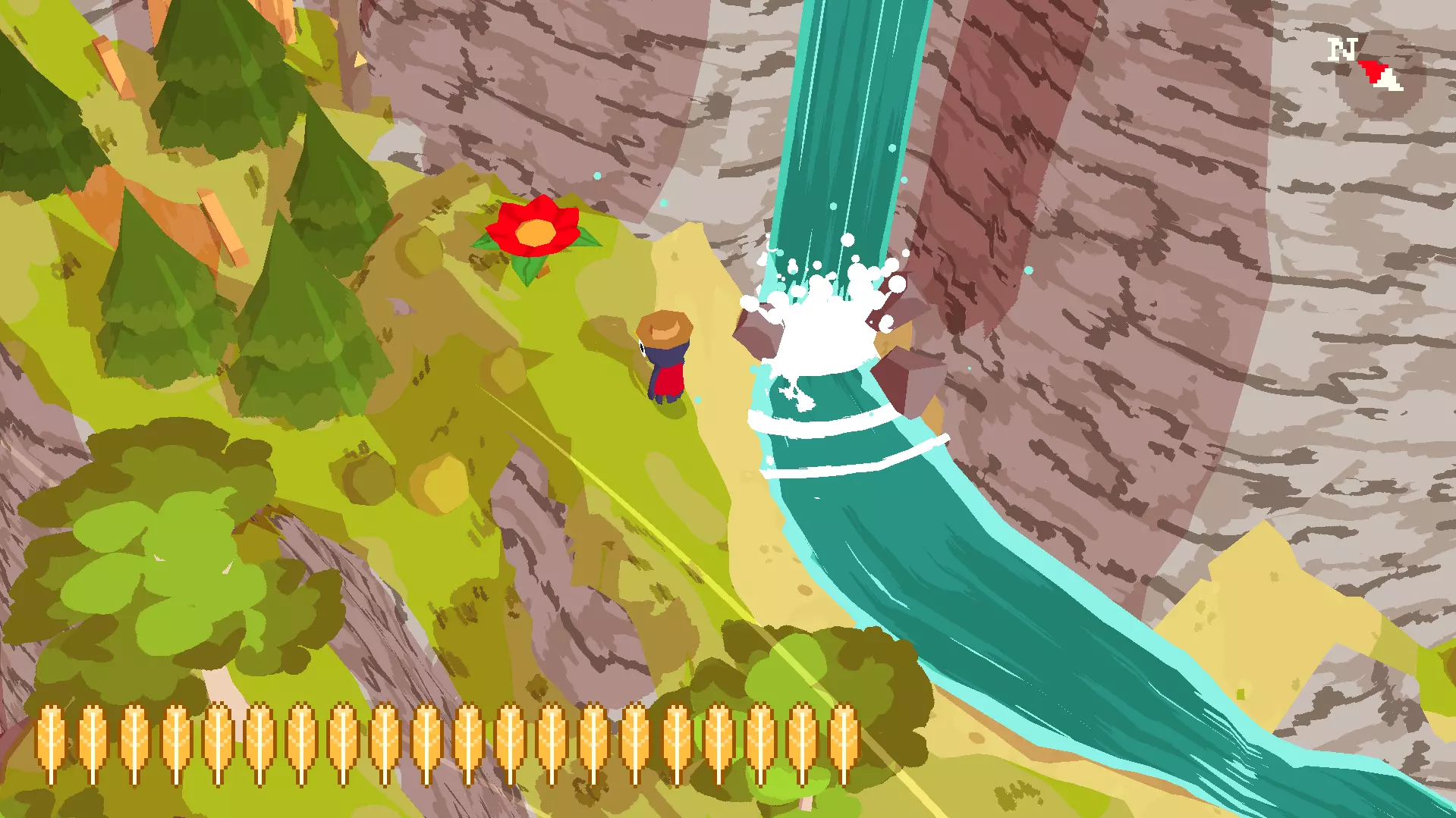 种植5朵花 你的下一朵花就在从你阿姨家出来的小路上。找到瀑布和那个让你帮忙收集15个贝壳的女孩。