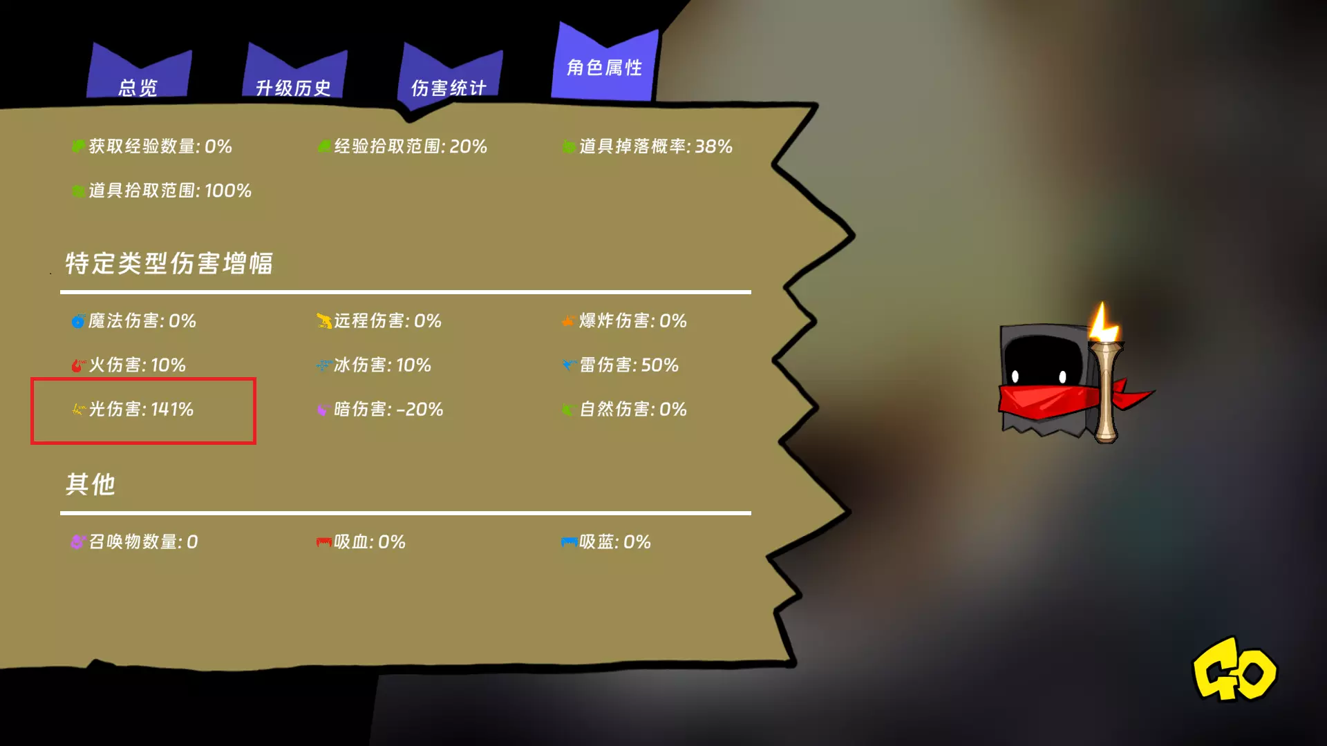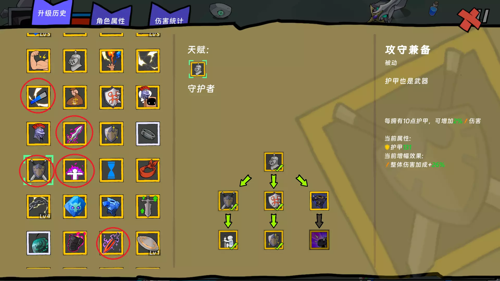 前期的技能参考图示,开局最好随机出魔法精通,没有的话就按ESC键重开,之后一路点选圣光球,最主要的是获取在圣光球状态下每15秒增加光伤害的技能。关键在于,BOSS关卡只要不击杀BOSS就能无限刷小怪,此时绕着BOSS一直转圈刷小怪,以此来刷取经验和光伤害数值。