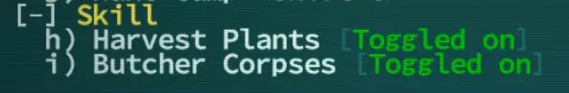 一旦开启这些功能,只要附近没有敌人,走过可采集/可屠宰的物体时就会自动进行相应操作。你也可以使用交互菜单并按下【H】采集或【B】屠宰。如果你进行自动探索,寻路算法也会为你自动采集和屠宰。不过,并非所有植物都可采集,也并非所有尸体都可屠宰。 我能等待植物成熟吗?不能。如果它们生成时未成熟,无论你等待多久,它们都将保持未成熟状态。 物品右侧像<这样>的东西是什么?(又名:工匠入门)