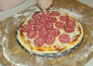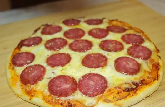 这里将列出这款披萨的原料。在这份食谱中,我想展示如何在家制作美味的意大利辣香肠披萨。其实,这很简单。最难的是找到意大利辣香肠,其他原料应该不成问题。试着在家做美味的披萨吧。这比看起来容易多了!配料 测试用: 面粉 - 2.5杯 + 用于准备模具 水 - 1杯 橄榄油 - 3汤匙 干酵母 - 10克 盐 - 1茶匙 糖 - 1茶匙 馅料: 意大利辣香肠 - 100克 马苏里拉奶酪(用于披萨) - 150克 高德奶酪 - 50克 酱料: 番茄酱(含自身汁液) - 400毫升 大蒜 - 2瓣 干牛至 - 1茶匙 干罗勒 - 1茶匙 黑胡椒 盐 糖 植物油 - 2汤匙茶匙 配料: 橄榄油 牛至 制作步骤: 向一个深碗中倒入1杯微温的水。加入1茶匙盐、1茶匙糖和10克干酵母。搅拌碗中的内容物,静置10分钟让酵母活化。