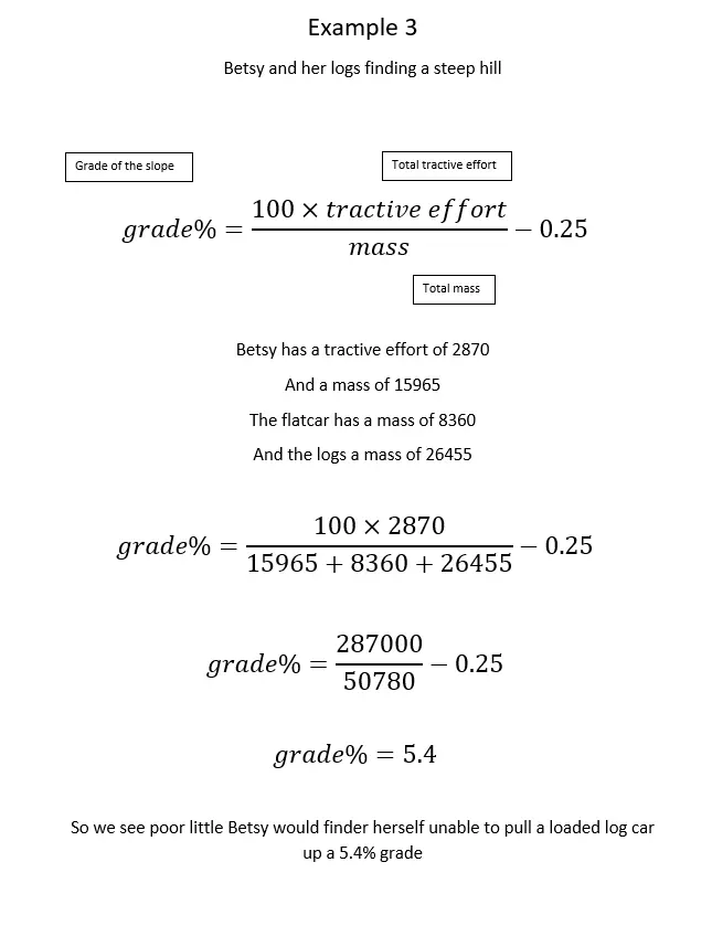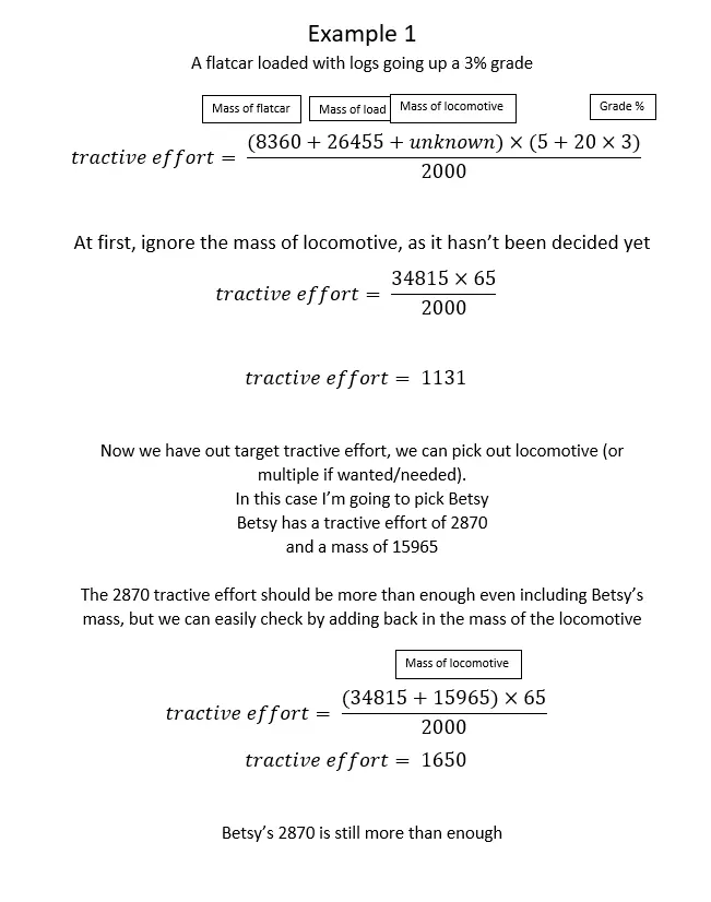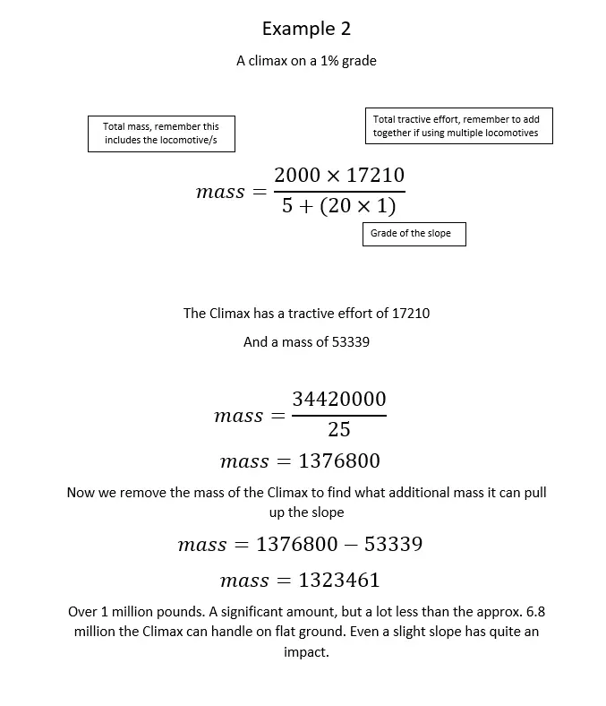 你已经拥有了自己的 locomotive(火车头)和需要攀爬的坡道,但一次能拉多少东西上去呢? 试试这个公式,记住结果的单位是磅。 在平地上,预期数值会很高(数百万磅),火车头在平地上的表现非常出色。 我应该重新铺设这条线路吗?