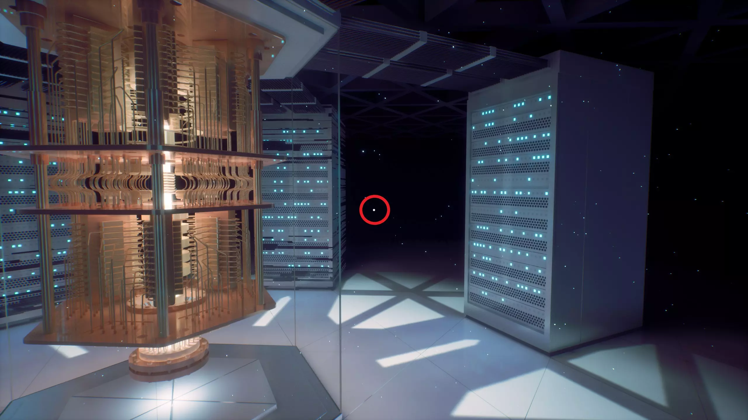 撕碎 奏响和弦! 最终章节 离开礼堂并收集到悼词的第二部分后,靠近右侧的门,找到一个有量子计算机的区域。在远处寻找一个音符:
