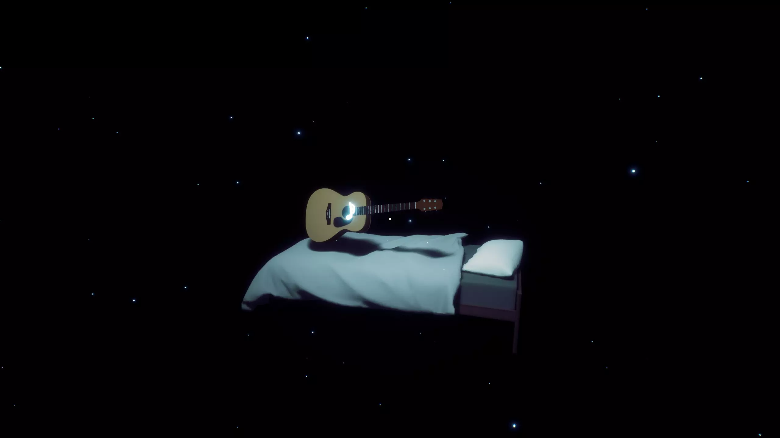 那里有一张床,旁边放着一把吉他