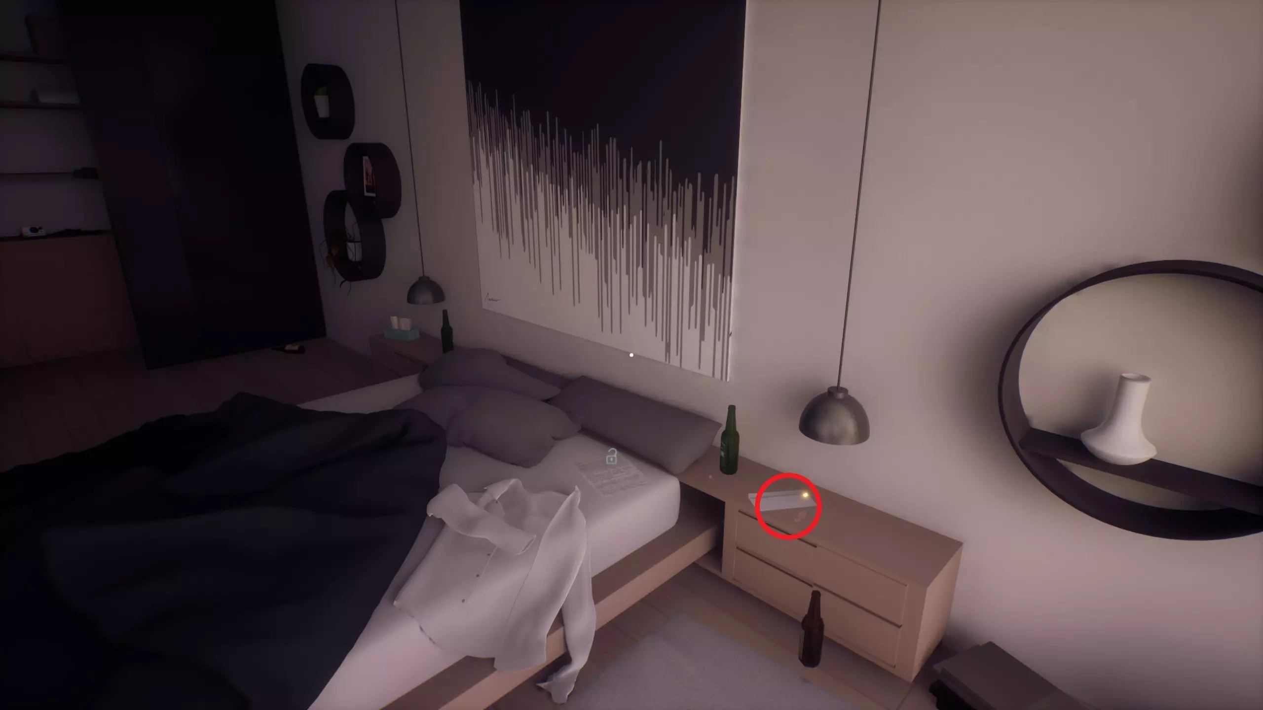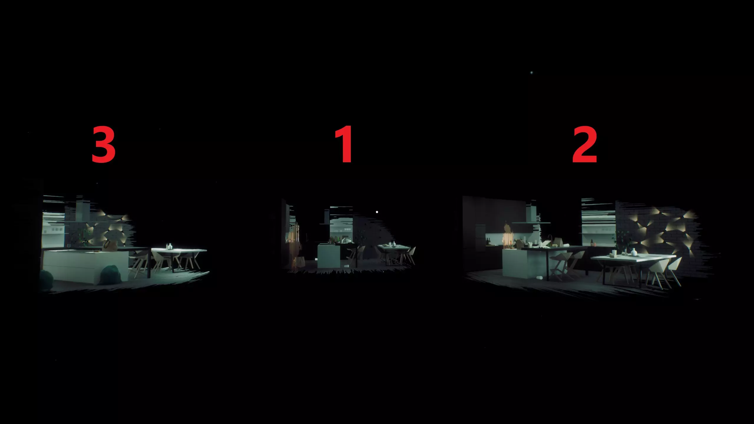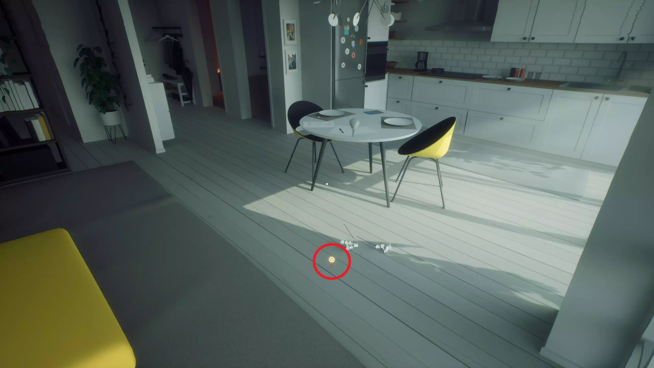 公寓 蜡烛(厨房) 海马项链(厨房) 枕头(沙发) 蜡烛(走廊) 外套(走廊) 虚无 房间入口*(右侧门) 枕头(右侧门) 宿舍 房间入口*(第一年) 书本(第一年) 克里斯的鞋子(走廊) 门(第二年) 笔记本电脑(第二年) 椅子(第三房间) 项链(第三年) 枕头(第三年) 办公椅(第四年) 礼堂 毕业帽 教授们* 虚无 量子计算机*(右侧门) 海滩 海滩入口* 太阳镜 鲨鱼鳍 海滩出口* 公寓 笔记(厨房) 枕头(客厅) 浴缸(浴室) 手机(浴室) 虚无 婚礼过道*(右侧门) 婚礼誓词*(右侧门) 公寓 圣诞树(走廊) 兔笼(走廊) 房间入口*(米娅的房间) 枕头(米娅的房间) 枕头(卧室) 卧室出口*(卧室) 为时已晚