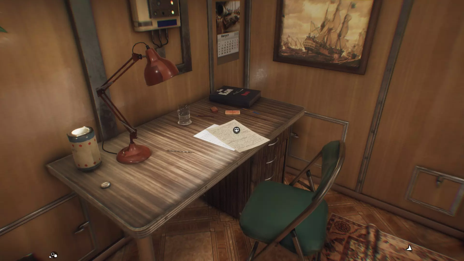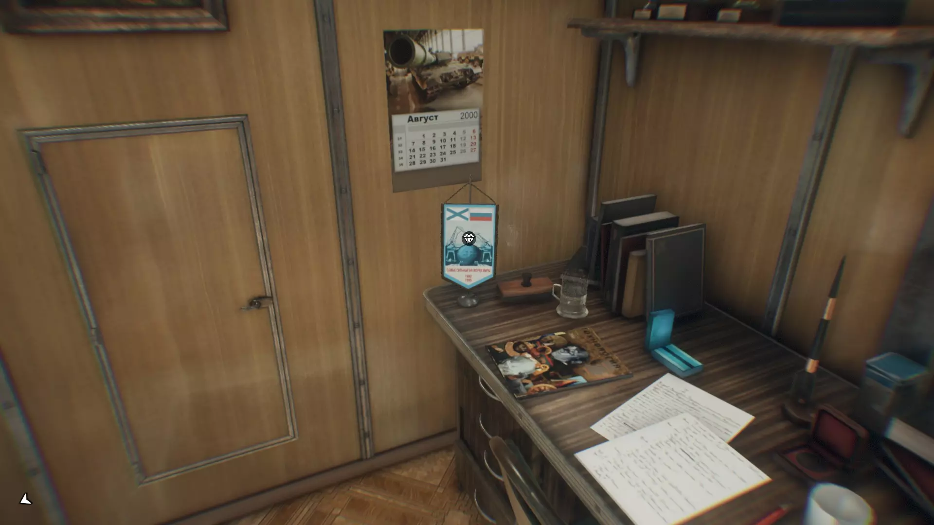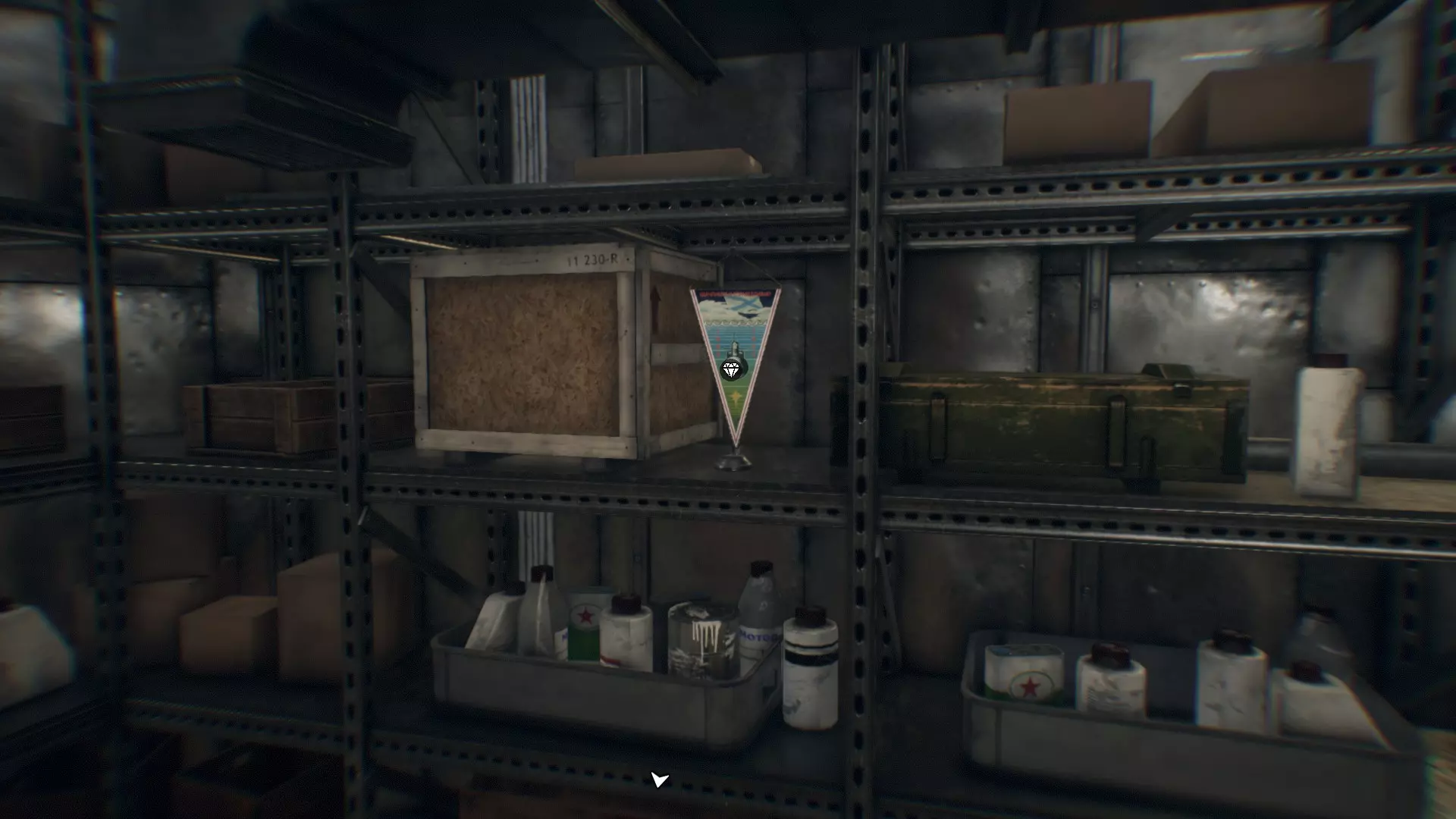 继续前进,直到库尔斯克号下潜。从现在开始,你可以探索库尔斯克号的大部分区域并收集大部分收藏品(除了两张笔记和一张可选笔记之外的所有收藏品)。你也可以按照任意顺序收集它们。在指挥室(船长所在的地方)有一面锦旗。