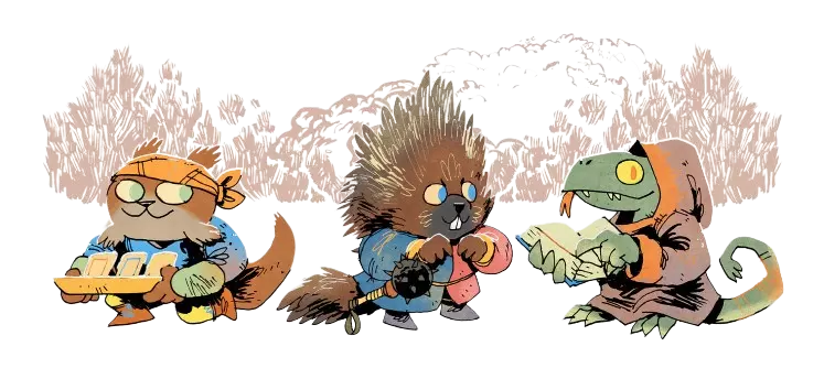 流浪者在林地各派系间维持着微妙的平衡。通常,他们的生存取决于能否根据冲突局势在各方之间周旋。因此,流浪者在与各派系建立和掌控声望时,必须暗中谨慎行事。 流浪者必须小心处理与各方的关系。通过协助某一派系获得好感,往往会在此过程中引起另一派系的反感。然而,他们的力量源于其灵活性:在不同任务和派系间游走,根据形势选择最有利的一方,而不固守单一目标。 对许多流浪者而言,生活就是一场冒险。尽管充满危险,但它所带来的财富、影响力和声望,是在林间空地中那些有限选择所无法企及的。流浪者可以受雇于有需要的居民,承接各种任务:深入古老遗迹、发掘失落宝藏,或是在森林深处与可怕的野兽搏斗。 这正是流浪者冒险精神的本质:当林间空地的居民受限于其社会的规则与束缚时,这些人却过着属于自己的生活。他们是自由的灵魂,没有固定的家园。风往哪里吹,他们就往哪里去,用尽一切办法旅行和生存。 河民公司:机遇商人 河民公司的根源,与那些纵横交错于林地间的水道紧密相连。一个依托自然地理环境形成的组织,丰富的河流与湖泊为其提供了绝佳资源,将曾经相对简单的航行活动转变为利润丰厚的产业。起初,只有少数居民群体利用河流进行简单的运输和贸易。这些早期的商人主要是水獭、海狸以及其他栖息在河边的生物,它们意识到这是建立正式贸易体系的机会。一旦商船服务开始提供货物与人员的跨河运输,业务便随之增长。这些群体凭借微薄的资源逐渐合并,最终形成了所谓的【河民公司】。