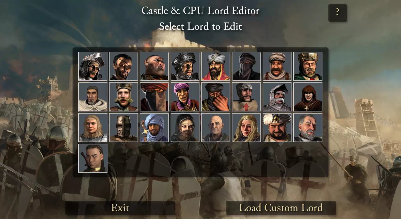 定义 在开始创建自定义领主前,了解本工具中使用的术语十分重要: AIV - AIV是CPU领主会建造的实体城堡。AIV以.aivjson文件类型保存。 AIC - AIC是领主配置,用于编辑建造风格、部队使用方式,以及军队规模、市场使用情况和其他设置。AIC以文件类型保存。领主编辑器 文件位置 所有与领主编辑器相关的文件和文件夹均保存在以下目录中: 用户 > <用户名> > AppData > LocalLow > Firefly Studios > Stronghold Crusader Definitive Edition > ExtendedLords/CustomLords ExtendedLords - 存储现有Firefly领主的已编辑版本 CustomLords - 存储你自己创建的领主 提示:按下Windows键+R打开运行框,输入%localappdata%low Firefly Studios Stronghold Crusader Definitive Edition可直接打开该文件夹。 注意:AIV和AIC文件可从游戏内地图编辑器上传至Steam创意工坊。 主菜单 启动该工具后,你将看到领主选择界面。