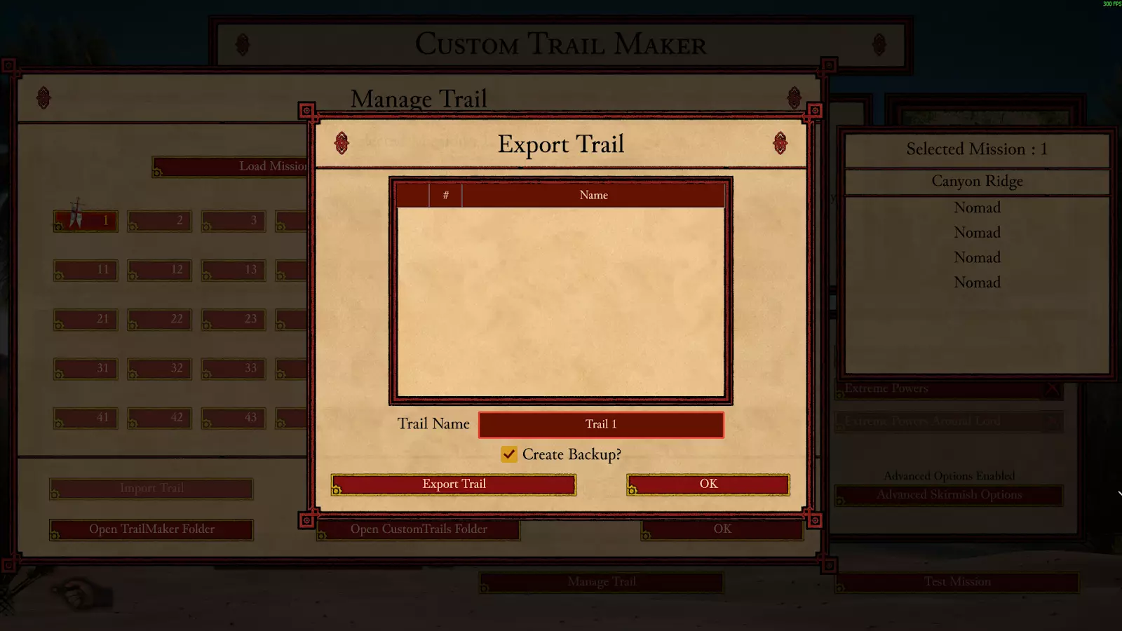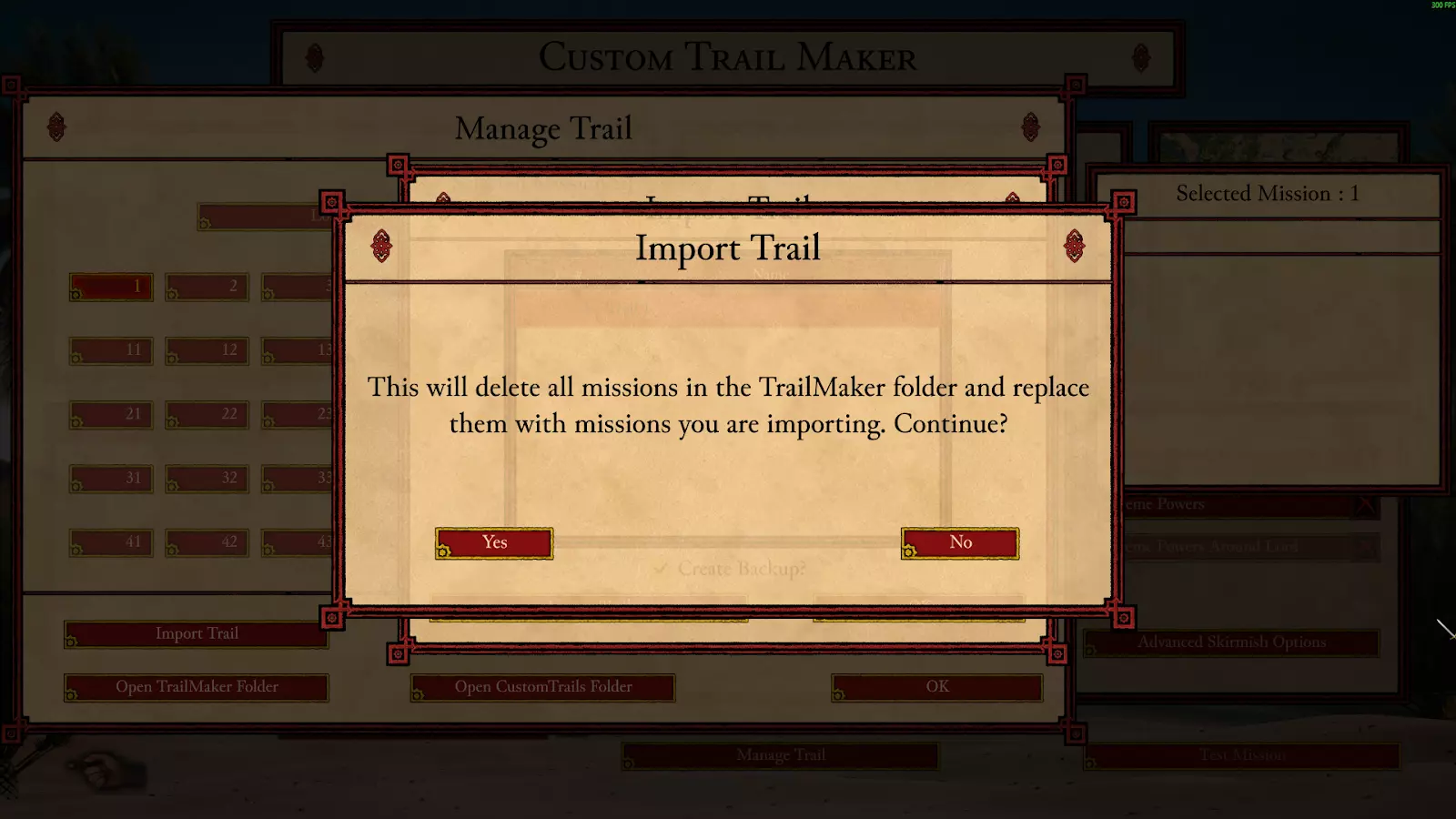 导出自定义战役路径 导出战役路径会将当前的路径保存到CustomTrails文件夹中。点击“导出战役路径”按钮后,会弹出一个窗口,你可以在其中为路径命名,同时在导出时创建备份。备份文件会保存在该文件夹内。制作战役路径时,若你有6个任务,前5个任务编号为1-5,而第6个任务位于第50个位置,导出路径后会自动移除任务之间的所有间隔,并按顺序重新编号任务。系统会弹出提示窗口,警告你正在导出到的文件夹中的所有任务都将被删除。此警告仅适用于导出到其他战役路径文件夹的情况,创建新文件夹时不会出现该提示。