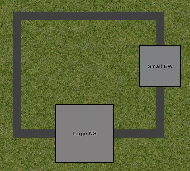 城门楼对齐 放置城门楼时,务必选择正确的朝向。在城堡编辑器中无法旋转城门楼,因此其朝向默认为标准的北、东、南、西方向。放置城门楼时,你会看到其旁边显示的方向标识(NS = 南北向,EW = 东西向)。编辑器中水平放置的城墙需搭配NS城门楼,垂直放置的城墙则需搭配EW城门楼,如图所示。