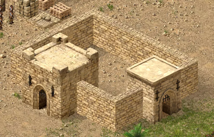 放置部队集结点 在城堡编辑器中,你还可以为防御部队选择“集结”位置。这些是地图上的标记,用于指示部队在创建后移动到何处(这些需要在领主编辑器中进行设置)。要在城堡周围放置部队位置,只需从右侧列表中选择部队类型(十字军、阿拉伯或贝都因),然后将其放置在城堡上。