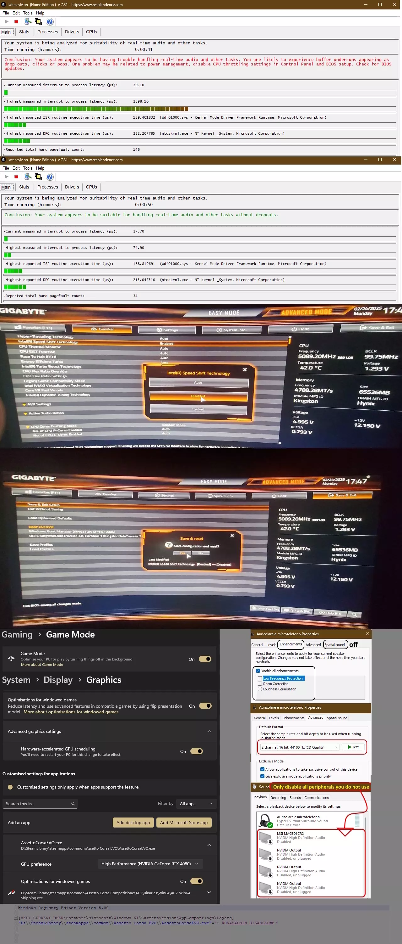 5. 禁用显示器的G-SYNC或FreeSync功能,关闭Windows的VRR(可变刷新率),并且不要在游戏中使用全屏模式。 6. 从压缩包中提取内容,双击AssettoCorsaEVO_Optimization_Boost.reg文件,在提示时确认并添加到注册表。 7. 要添加优化的神力科莎EVO配置文件,将.nip文件拖入NvidiaProfileInspector中并应用。