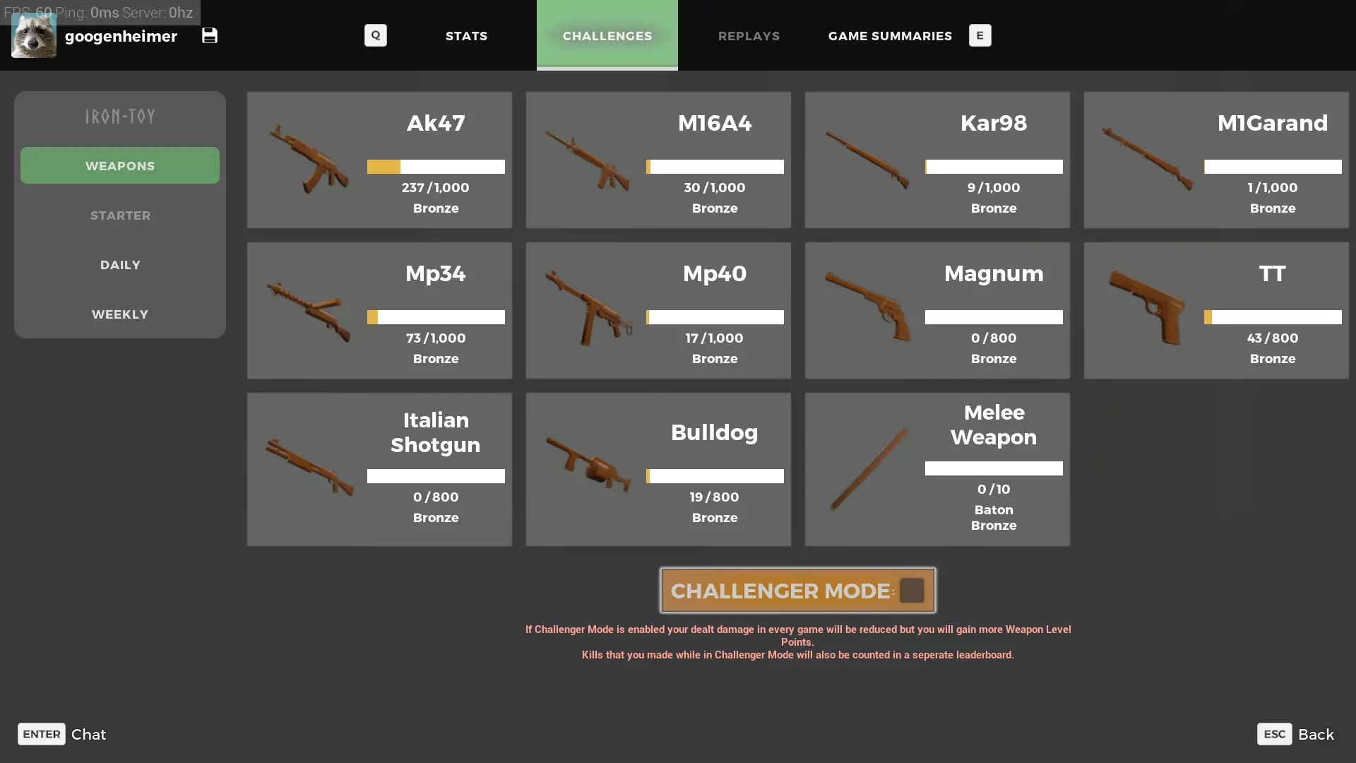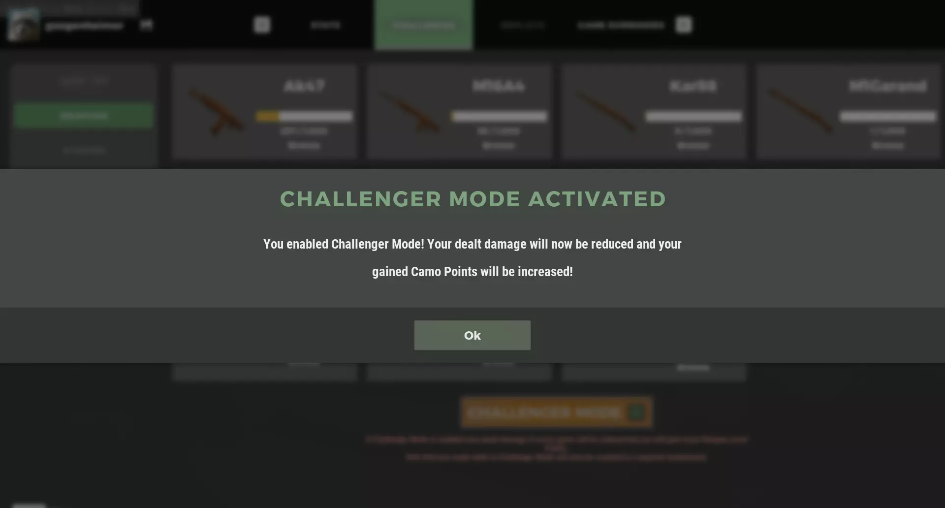 4. 完成设置后,就可以开始游戏了! 没错,你造成的伤害会降低,但几乎没什么影响。我在自己的账号上启用这个设置后,短短几天就把两把武器刷到了黄金级。 你造成的伤害会从100%降至75%,但迷彩点数会获得250%。